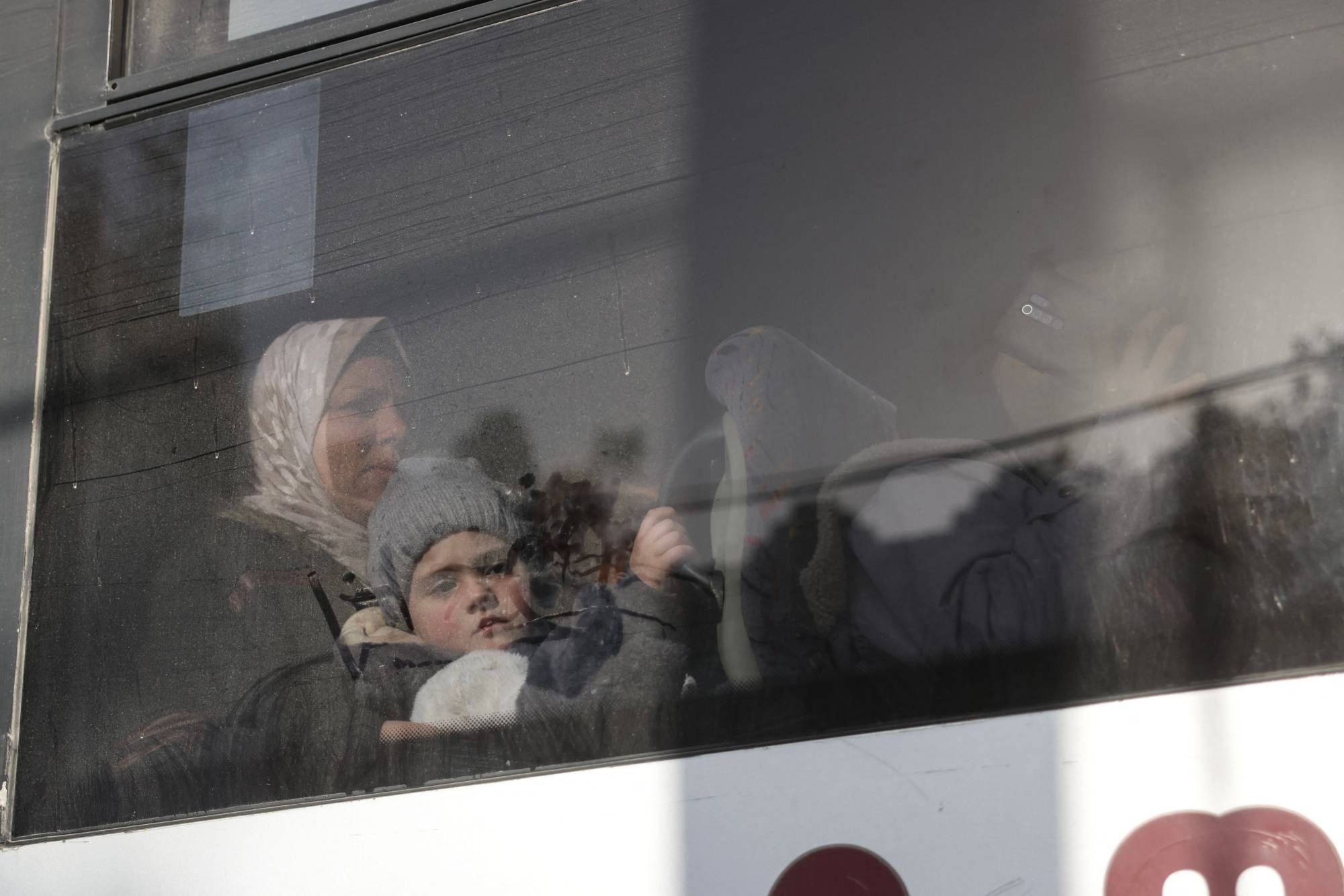 وبعد عملية التفتيش في تلك المحطة يركب العائدون الحافلات بمرافقة أعضاء برنامج الأمم المتحدة الإنمائي.