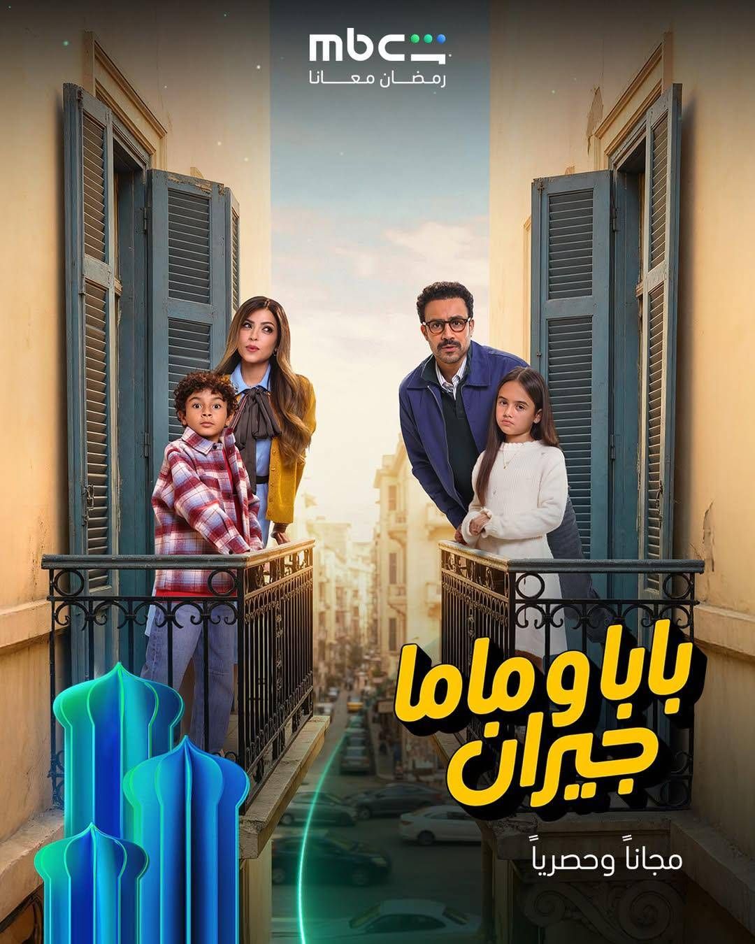 من بين هذه الأعمال مسلسل «بابا وماما جيران»، الذي يتقاسم بطولته أحمد داود وميرنا جميل، وتدور أحداثه حول العلاقة بين الثنائي بعد الانفصال، وإقامة كل منهما في شقة مستقلة، بينما يتشاركان في البحث عن حلول للتعامل مع أطفالهما بين شد وجذب.