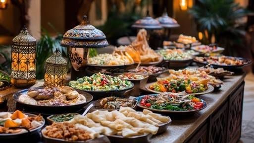 تعكس قائمة التموين الخارجي مفهوم بوفيه ليالي رمضان، وتشمل المقبلات الساخنة والباردة، والشوربات الرمضانية، ومحطات الطهي المباشر عند الطلب، والمشاوي الفاخرة، وتشكيلة غنية من الحلويات العربية والمشروبات الرمضانية التقليدية، مع ضمان جودة عالية وطزاجة مضمونة وتقديم راقٍ.