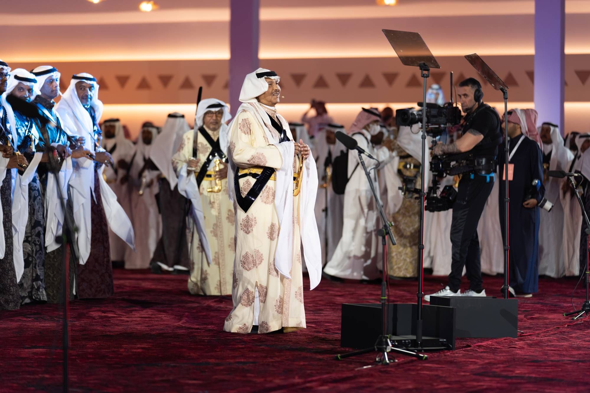 ألهبت كلمات «عليك يا سلمان بن عبد العزيز السلام.. أبو فهد مقدم هل العوجا وزيزومها» مشاعر الحضور من الأمراء وكبار المسؤولين، في ليلة من ليالي العاصمة السعودية الشتوية، وهي تحتفي بذكرى يوم التأسيس، برعاية الأمير فيصل بن بندر أمير منطقة الرياض، وحضور نائبه الأمير محمد بن عبد الرحمن، ثم أعادت كلمات «للسيف عرضة وفنّا.. والدار عنها يذود» للأذهان دور السيف في توحيد البلاد، وموقعه الرئيسي ضمن أدوات العرضة السعودية.