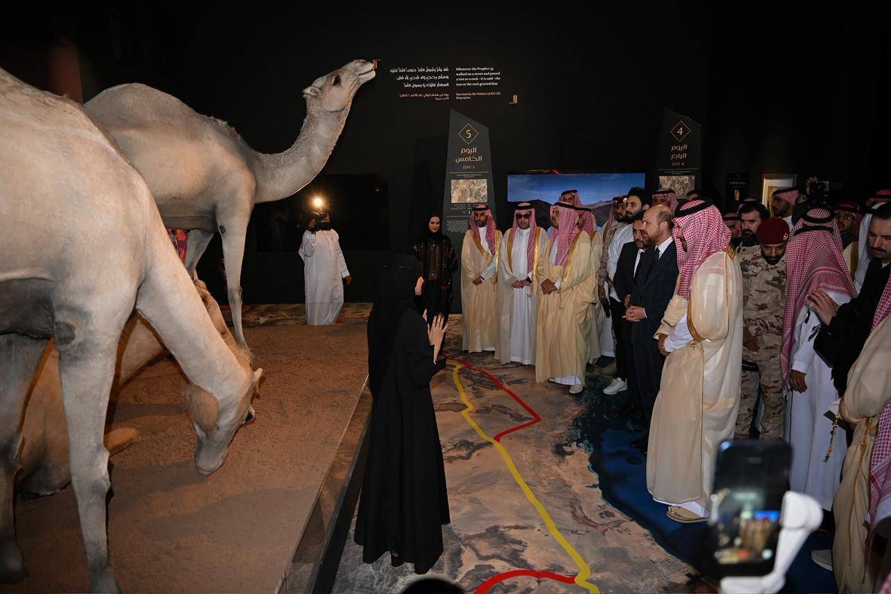 وقدّم مدير مركز الملك عبد العزيز الثقافي العالمي (إثراء) المكلّف مصعب السعران، نبذة عن المعرض الذي يمثّل إحدى المبادرات الرئيسية ضمن مشروع «الهجرة» بمشاركة أكثر من 70 فناناً من أكثر من 20 دولةً، ويضم 53 قطعة فنية، إلى جانب الفيلم الوثائقي الذي عُرض لأول مرة في بينالي الفنون الإسلامية عام 2023، وكتاب «الهجرة على خطى الرسول ﷺ» باللغتين العربية والإنجليزية، إضافة إلى تجربة الواقع الافتراضي، وذلك في إطار رؤية شاملة تهدف إلى تقديم قصة الهجرة النبوية عبر وسائط معرفية متعددة.