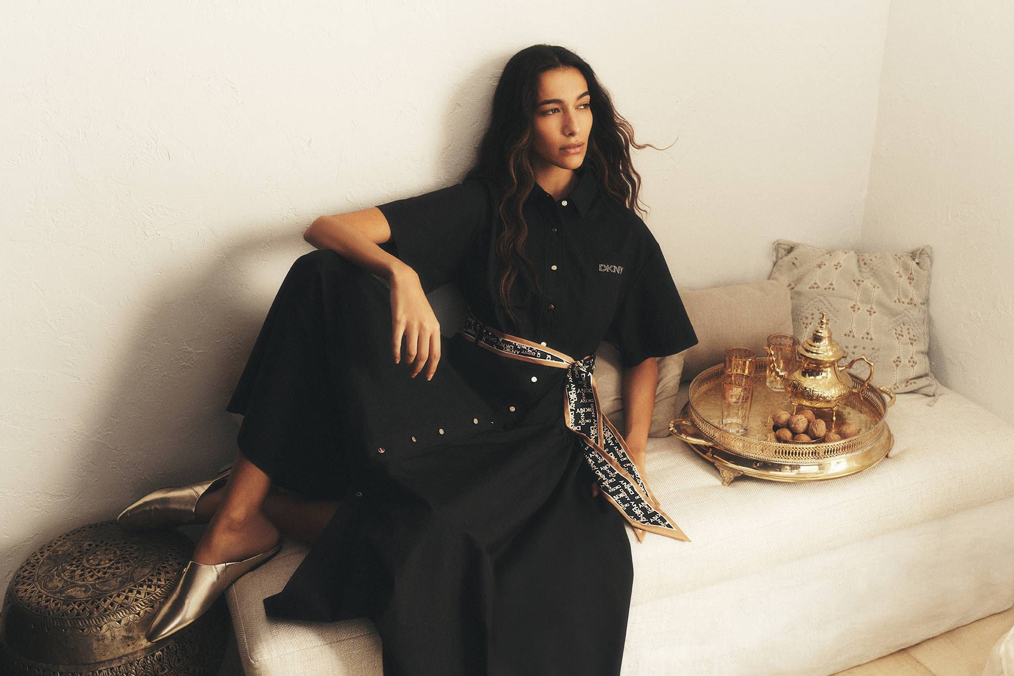 علامة «دي كي إن واي» DKNY ذهبت إلى أبعد من طرح مجرد أزياء محتشمة أو إكسسوارات تتوخى أن تجد لها مكاناً بارزاً في هذا السباق. تعاونت مع المؤثرة دينا السعدي من خلال تشكيلة محدودة الإصدار وحصرية «استُلهمت تفاصيلها من أمسيات رمضان الهادئة ولحظات التلاقي الدافئة» وفق قولها، وهو ما ترجمته في قصّات انسيابية، وألوان هادئة تتباين بين الترابي الهادئ والذهبي الدافئ.