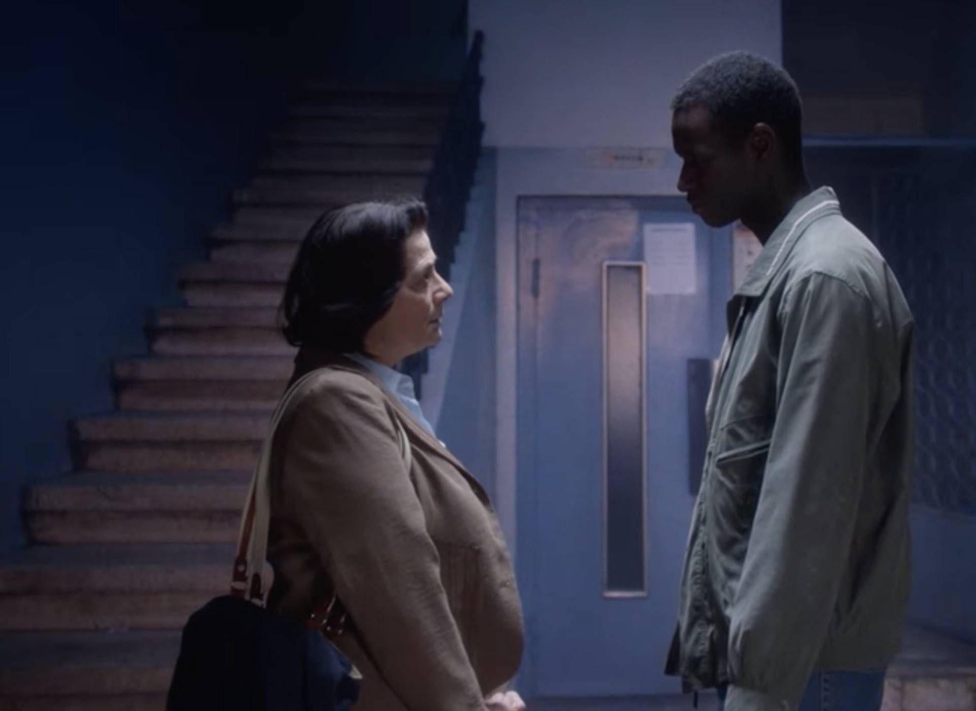 تؤدي دور سوزان، الأرملة التي بلغت 63 من العمر (بلكنة لبنانية صحيحة)، وتشاهد مجموعة من الشبان يضربون شاباً أفريقياً. هؤلاء عصابة احتجزت جواز سفره وأجبرته على العمل من دون أجر.