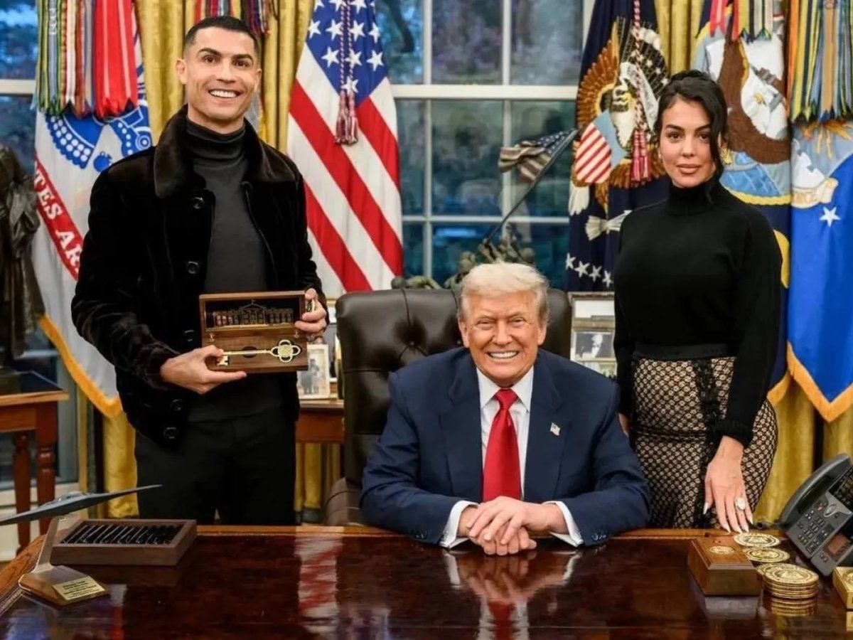 كما قدَّم ترمب لرونالدو مفتاحاً ذهبياً للبيت الأبيض تكريماً له بوصفه ضيفاً مميزاً، وسط تقارير عن اتصال هاتفي جرى بينهما لاحقاً.