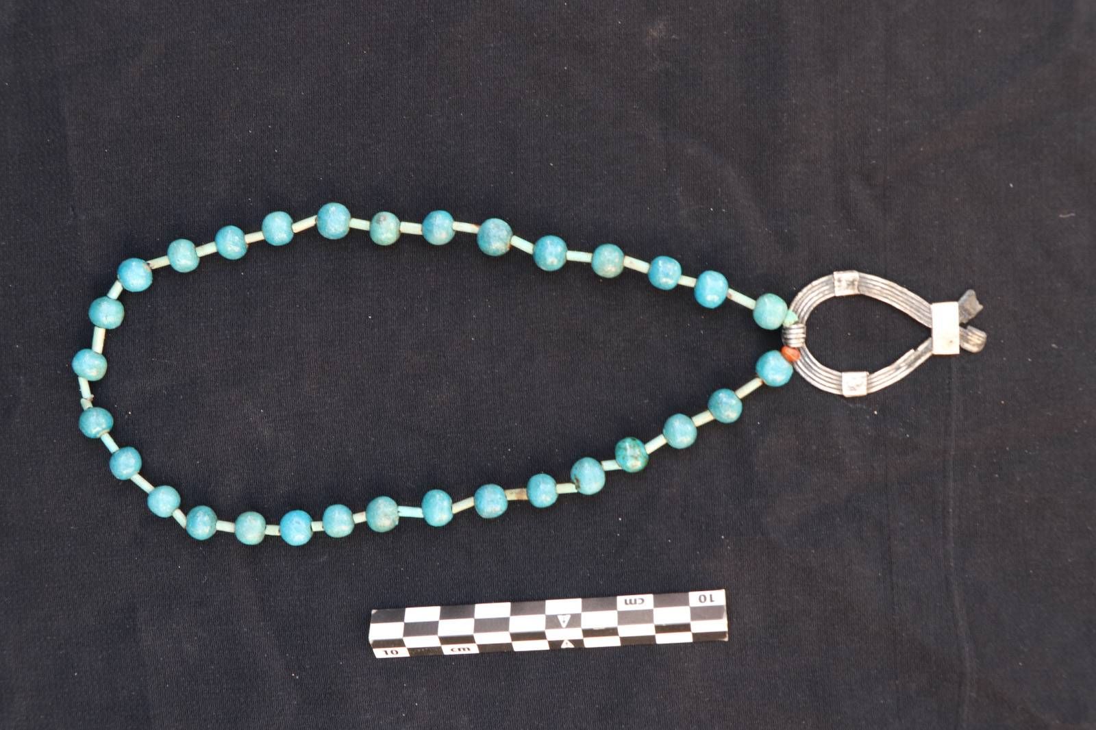 وفي الفناء الخارجي للمقابر، عثرت البعثة على مجموعة من الحُلي شملت مرايا من البرونز، ومكاحل من الألبستر، وعقوداً من الخرز بألوان وأشكال متنوعة، إضافة إلى تمائم مختلفة تعود إلى عصر الدولة الوسطى.