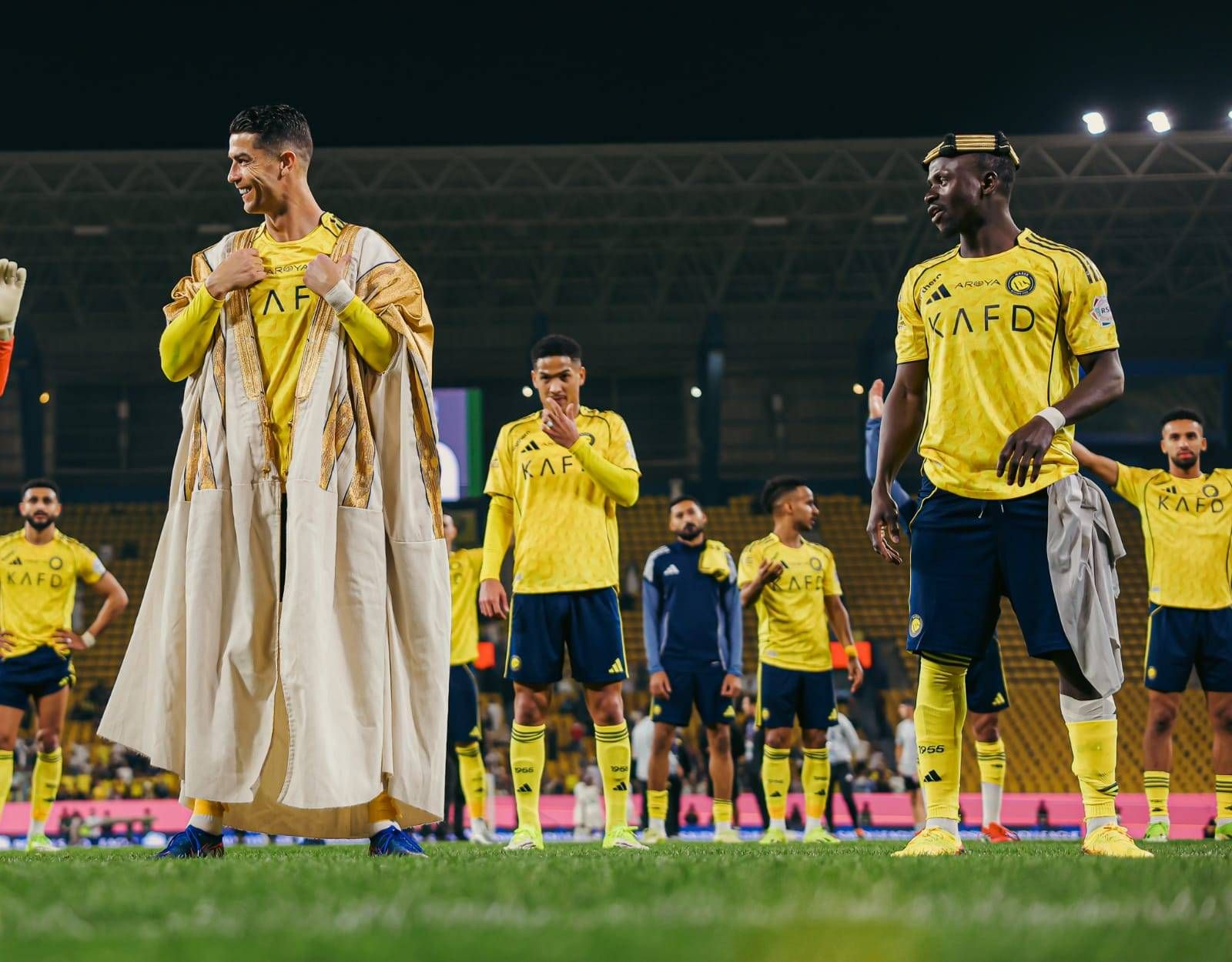 وقاد الأسطورة البرتغالي كريستيانو رونالدو احتفالات النصر باستعادة صدارة الدوري السعودي للمحترفين، مرتديا البشت السعودي بطرازه القديم والتاريخي والذي انتشر على نطاق واسع هذه الأيام احتفالا بيوم التأسيس السعودي والذي يوافق الـ 22 من فبراير من كل عام.