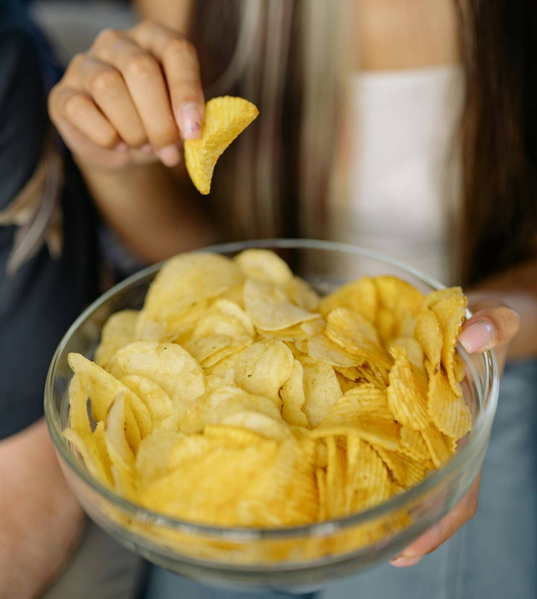 تنتمي البطاطا المقليّة المثيرة للشهيّة إلى فئة النشويّات المشبعة بالدهون غير الصحية. وليس صدفةً أن تشعر برغبة في تناول الحلويات بعد إفراغك كيس التشيبس. فرقائق البطاطا وسائر الوجبات الخفيفة المالحة ليست سوى كربوهيدرات بسيطة سريعة الهضم، تتسبب بارتفاع مستويات الإنسولين ثم انخفاضها.