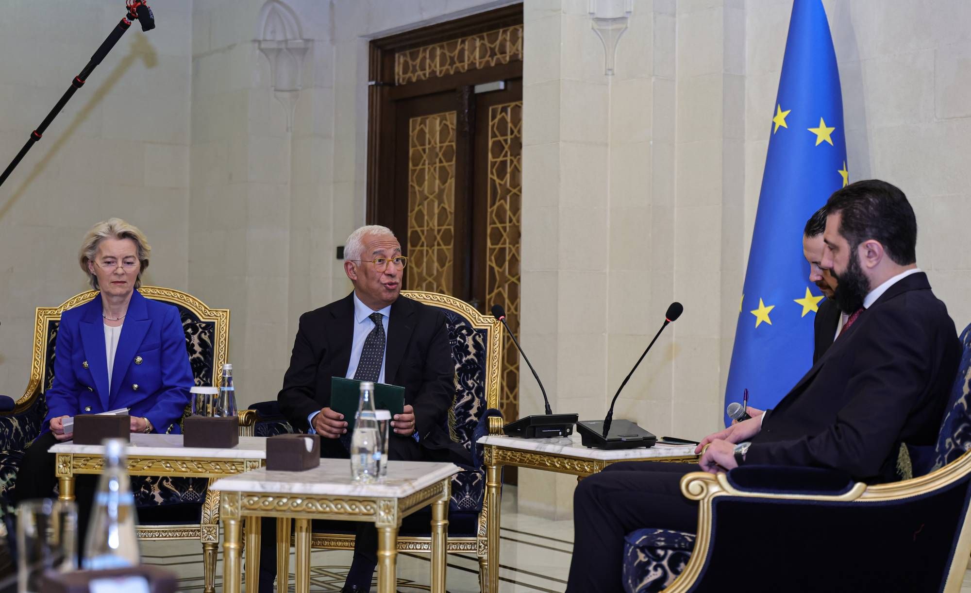 وأفادت الرئاسة السورية في حينها، بأن الرئيس الشرع ناقش مع كوستا، ورئيسة المفوضية الأوروبية أورسولا فون دير لاين، أهمية الحفاظ على وحدة الأراضي السورية، وسبل تطوير علاقات التعاون بين سوريا والاتحاد الأوروبي، خصوصاً في مجالات إعادة الإعمار، وترسيخ الاستقرار في البلاد والمنطقة.