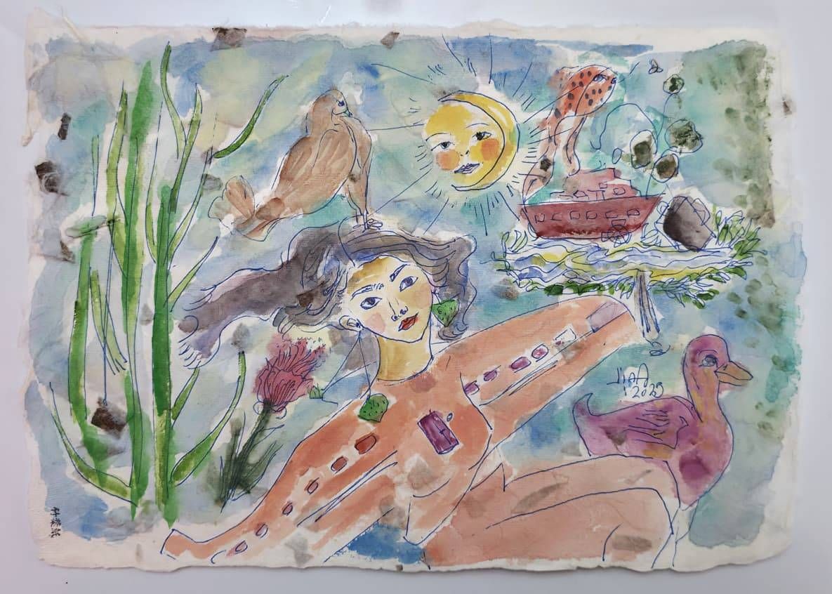 وتستقبل الزائرَ أعمالُ الفنانة التايوانية سوزان لين التي تتنقل ممارستها الفنية بين الحبر وفنون الطباعة، في مسعى لالتقاط وهج الحياة واستدعاء صدى شعوري عميق لدى المتلقي.