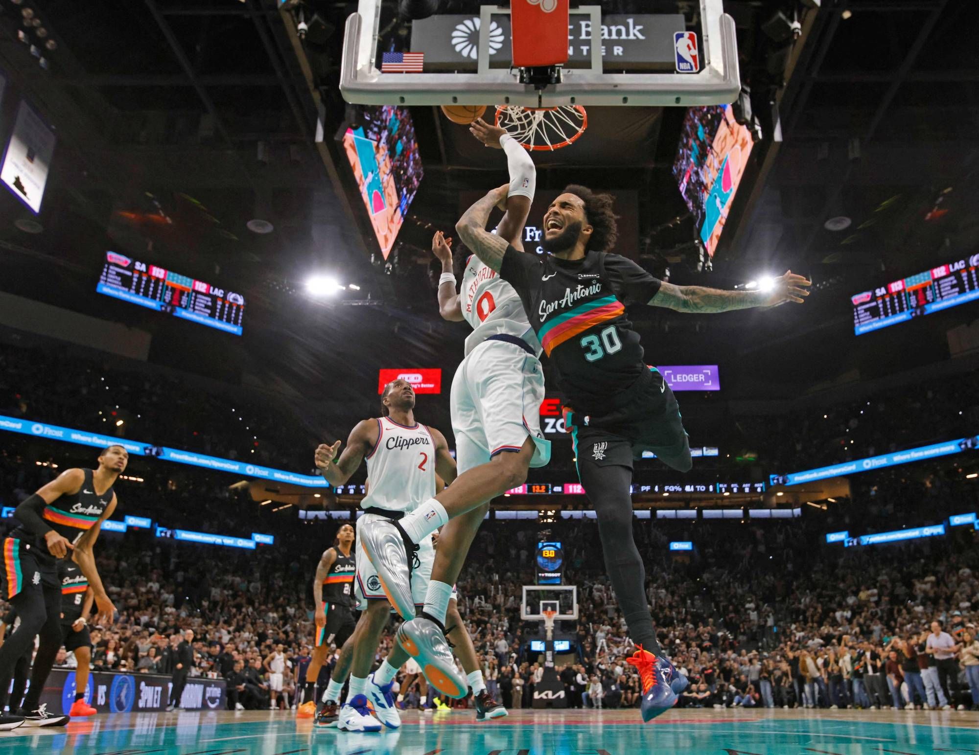 وبدا سبيرز الذي هزم متصدر المنطقة الشرقية ديترويت بيستونز الخميس، متأثراً بتبعات ذلك الفوز؛ إذ تقدَّم كليبرز بنتيجة 75-50 مطلع الربع الثالث. ولكن النجم الفرنسي فيكتور ويمبانياما قاد انتفاضة مذهلة في الشوط الثاني، سمحت لسان أنتونيو بخطف التقدم في الربع الأخير وانتزاع الفوز في الثواني الحاسمة.
