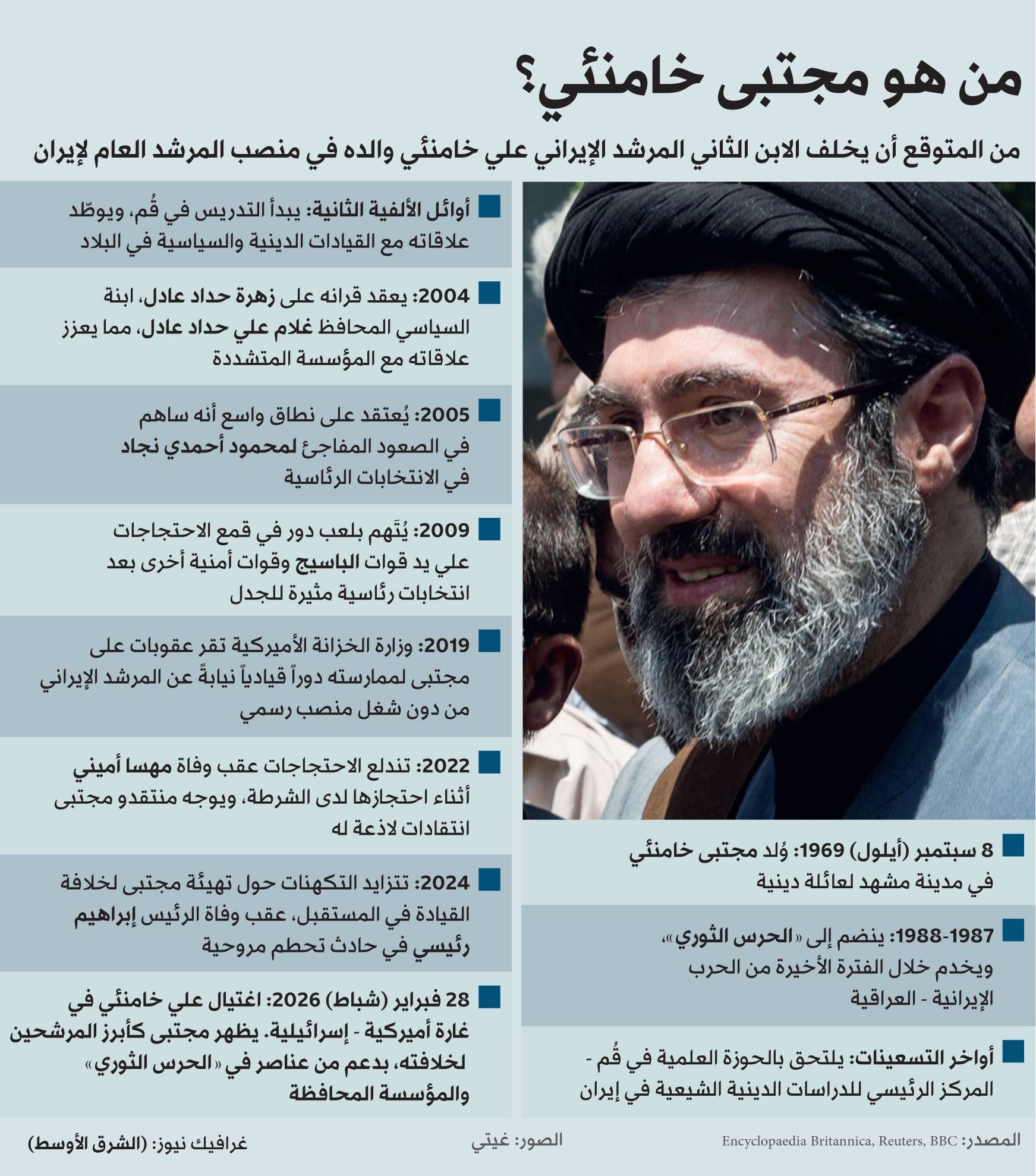 المؤكد، وفق كل المعطيات التي أحاطت به طوال العقدين الماضيين، أن مجتبى خامنئي لم يكن اسماً عابراً في معادلة الخلافة، بل مشروع سلطة نضج بصمت، حتى خرج أخيراً من الظل إلى القمة.