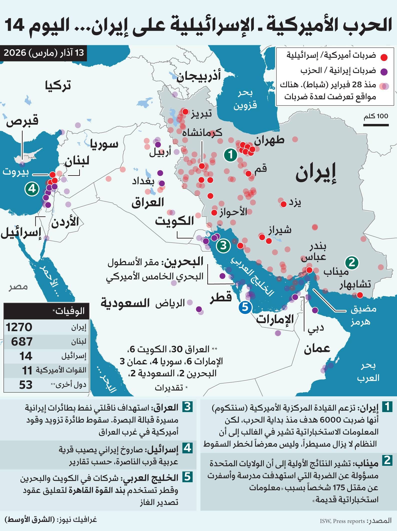 اخبار العرب -كندا 24: الجمعة 13 مارس 2026 04:15 مساءً حرب إيران لأسبوع ثالث... الغارات تتكثف وترمب يهدد بـ«ضربات قوية»