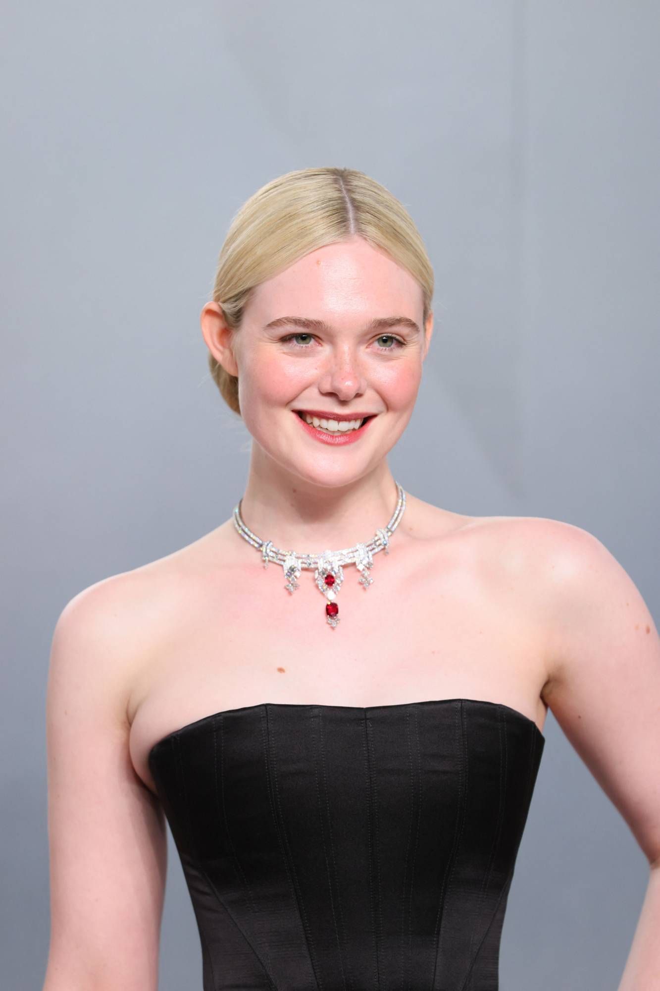 إيل فانينغ هي الأخرى اختارت «كارتييه» لتضمن التألق في مناسبة لا تقبل غير ذلك. اختارت فستانا باللون الأبيض صممته خصيصاً لها سارة بيرتون، مصممة دار «جيفنشي». أما العقد فعمره أكثر من مائة عام، إذ يعود تصميمه إلى عام 1904. مُرصَع بألماس دائري وقابل للتحول بحيث يمكن تفكيكه وارتداؤه كقطع مختلفة.