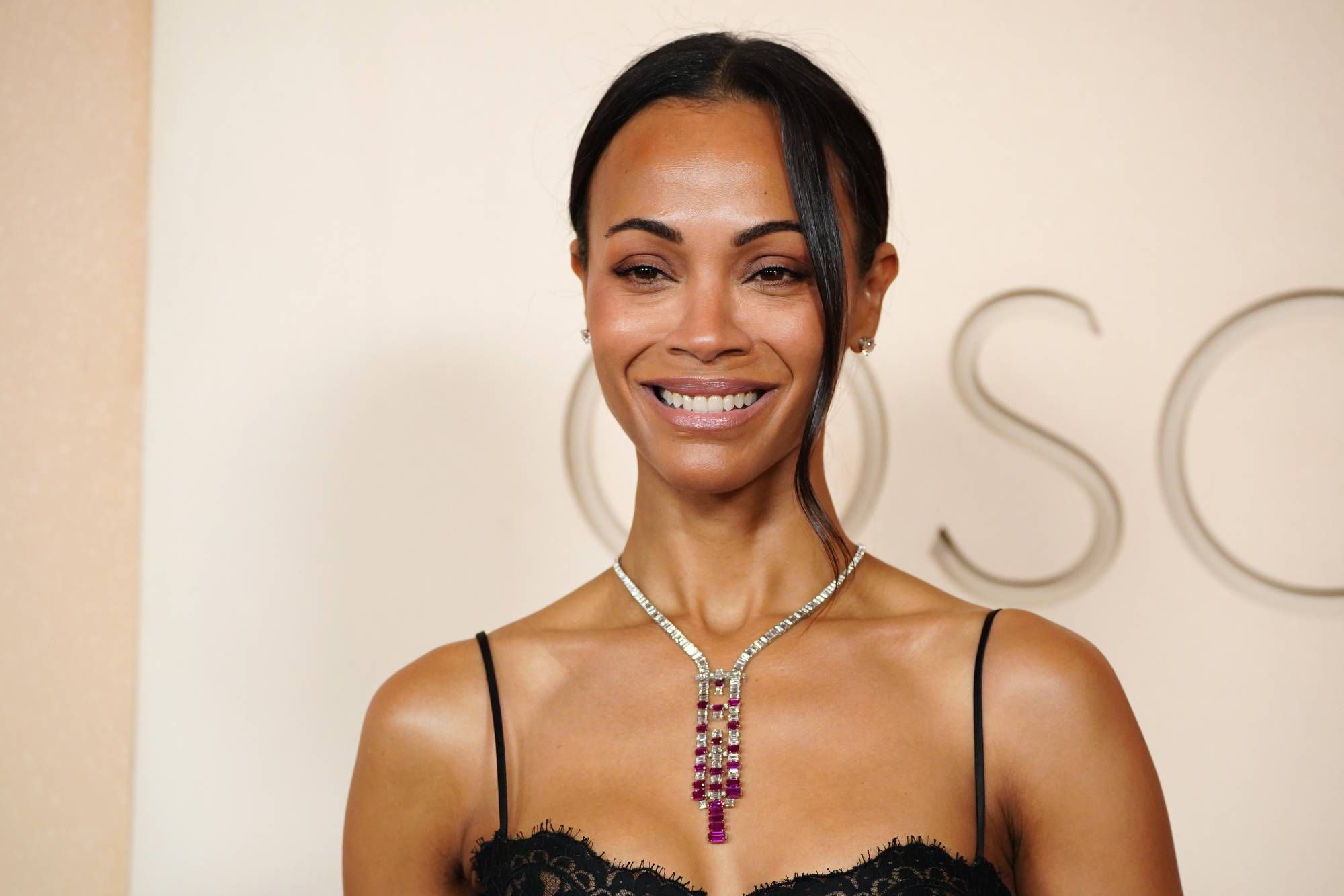 زوي سالدانا مالت إلى أناقة كلاسيكية معاصرة، فارتدت فستاناً أسود من الدانتيل من «سان لوران» نسقته مع عقد من دار «كارتييه» مصنوع من البلاتين المرصع بالياقوت الأحمر والماس، وبتصميم هندسي مستهلم من الآرت ديكو.