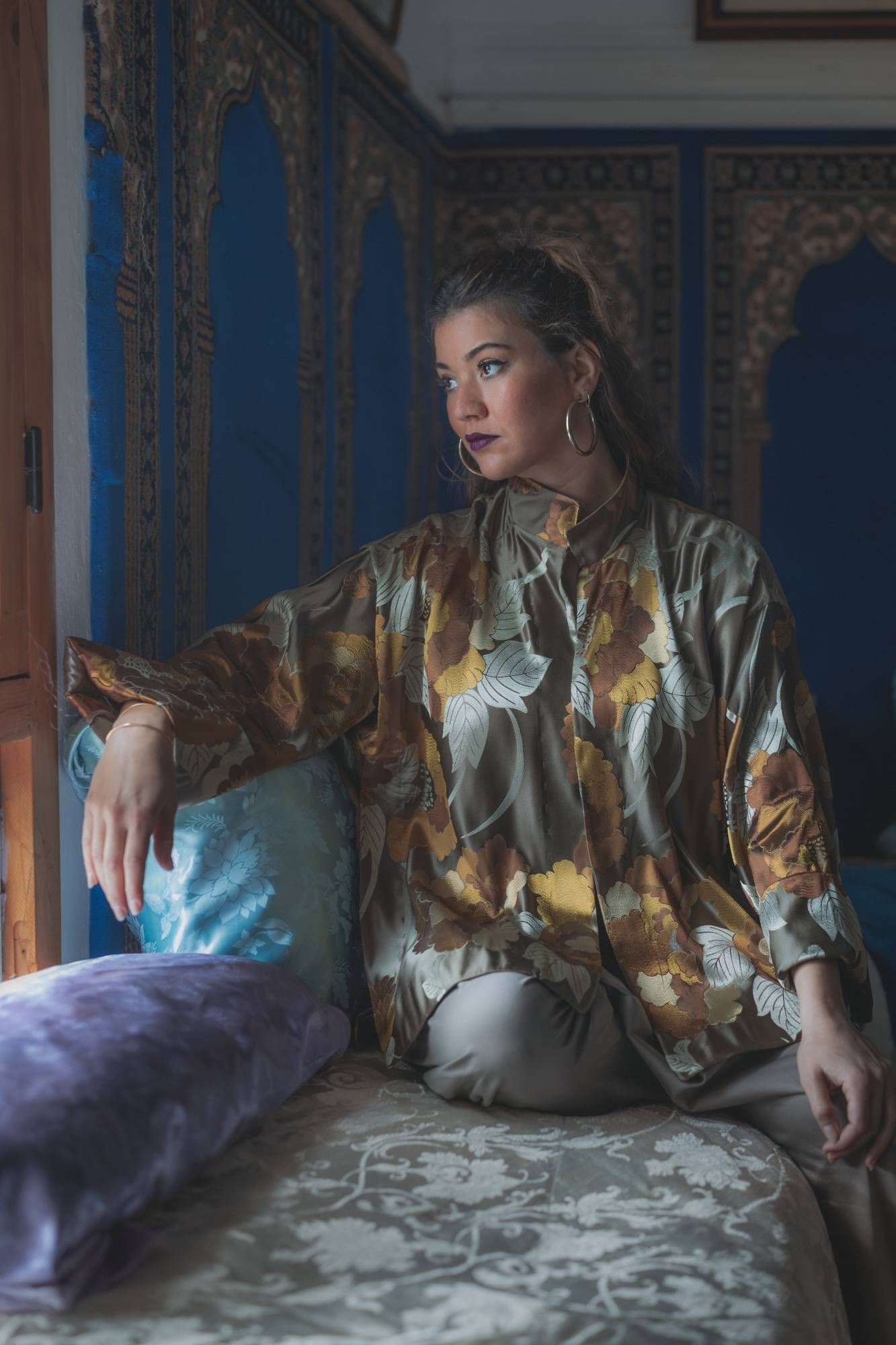 تشرح كنزة بأن الأقمشة التي استعملتها تركز على المواد الأساسية للقفطان، في استحضار واعٍ للتبادلات التاريخية بين المغرب وطريق الحرير. «فهذه الأقمشة»، وفق قولها: «تتميز بنقشات نباتية ولمسات ذهبية وألوان عميقة جعلت توظيفها في قفاطين منسدلة ومعاصرة ترقى إلى مستوى خيالي، لكن لا يمُت للتخيلات بصلة». شملت هذه الرؤية أيضاً مجموعة خاصة من «الجبادر»، زي يتكون من سروال وقميص أو سترة طويلة، حيث أعادت المصممة صياغته هو الآخر بأسلوب منطلق، دمجت فيه القطن السادة بالحرير المزخرف. وهكذا نجحت في تحرير السترات والسراويل من أي زخارف لا تضيف شيئاً إلى بنائه، وخلقت توازناً جمع بين بساطة الخطوط وترف الأقمشة.