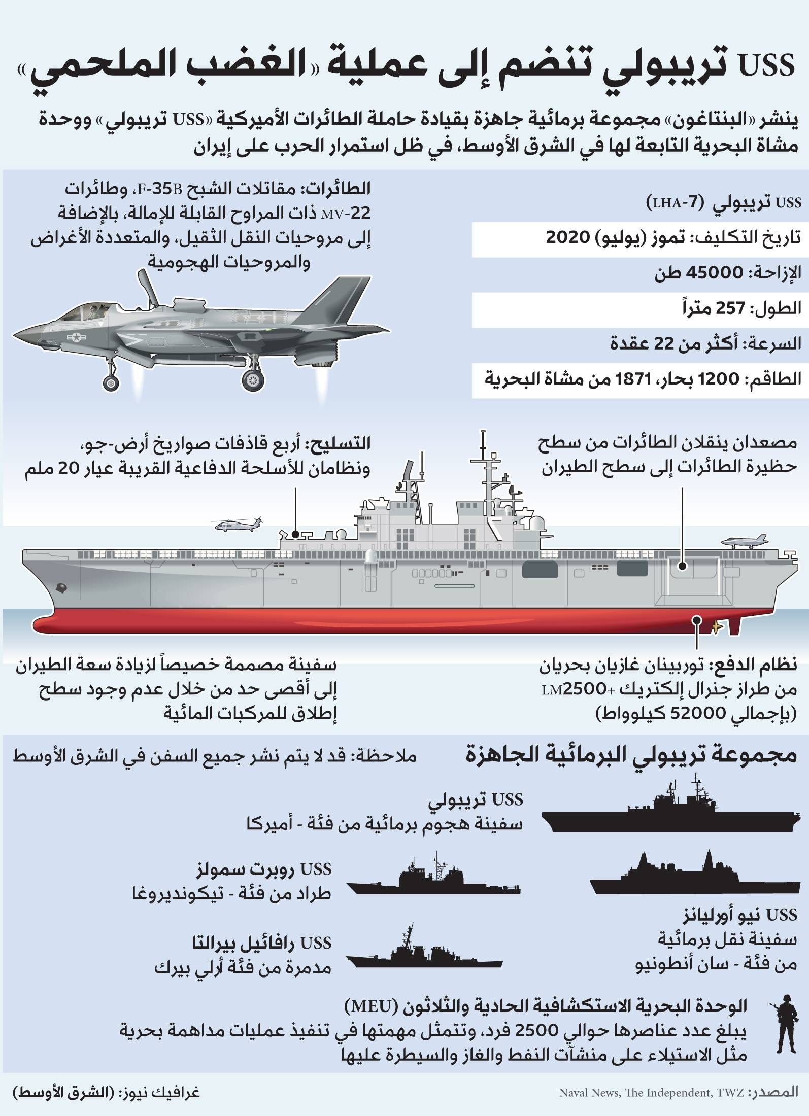 كما توعد المتحدث باستهداف المراكز اللوجيستية والخدمية التي تُبقي حاملة الطائرات الأميركية «جيرالد فورد» في حالة تشغيلية، قائلاً إن الحاملة في البحر الأحمر «تمثل تهديداً لإيران».