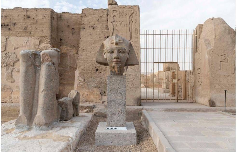 وأشار الأمين العام للمجلس الأعلى للآثار، الدكتور هشام الليثي، إلى أن أعمال الترميم تمت تحت الإشراف الكامل للمجلس، ووفق أحدث الأساليب العلمية المتبعة عالمياً في مجال صون الآثار وترميمها؛ حيث نجح فريق العمل في إعادة تجميع الوجه والرأس بدقة بعد أن كانت منفصلة عن غطاء الرأس الملكي المعروف باسم «النمس»، موضحاً أنه «عقب الانتهاء من أعمال الترميم تم تثبيت الرأس فوق قاعدة حجرية عند مدخل الصرح الثاني للمعبد على ارتفاع مناسب يتيح للزائرين مشاهدتها بوضوح، بما يُسهم في تحسين التجربة السياحية بالموقع الأثري، وإبراز القيمة الفنية والجمالية له».