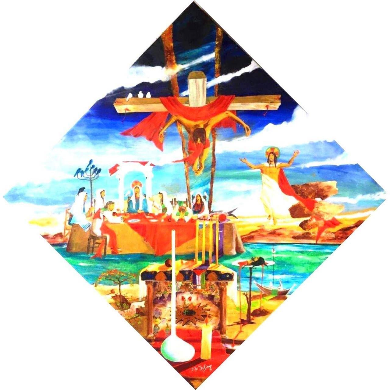 ويضمّ المعرض لوحة للفنان الفلسطيني ياسر أبو سيدو بعنوان «السيد المسيح قام»، تُعبِّر عن مشهد الصلب بأسلوب يربط بين الطابع الديني والمأساة التاريخية. وحسب أبو سيدو، فإن سفارة فلسطين في القاهرة اختارت لوحته لإهدائها إلى البابا تواضروس الثاني، بابا الإسكندرية وبطريرك الكرازة المرقسية.