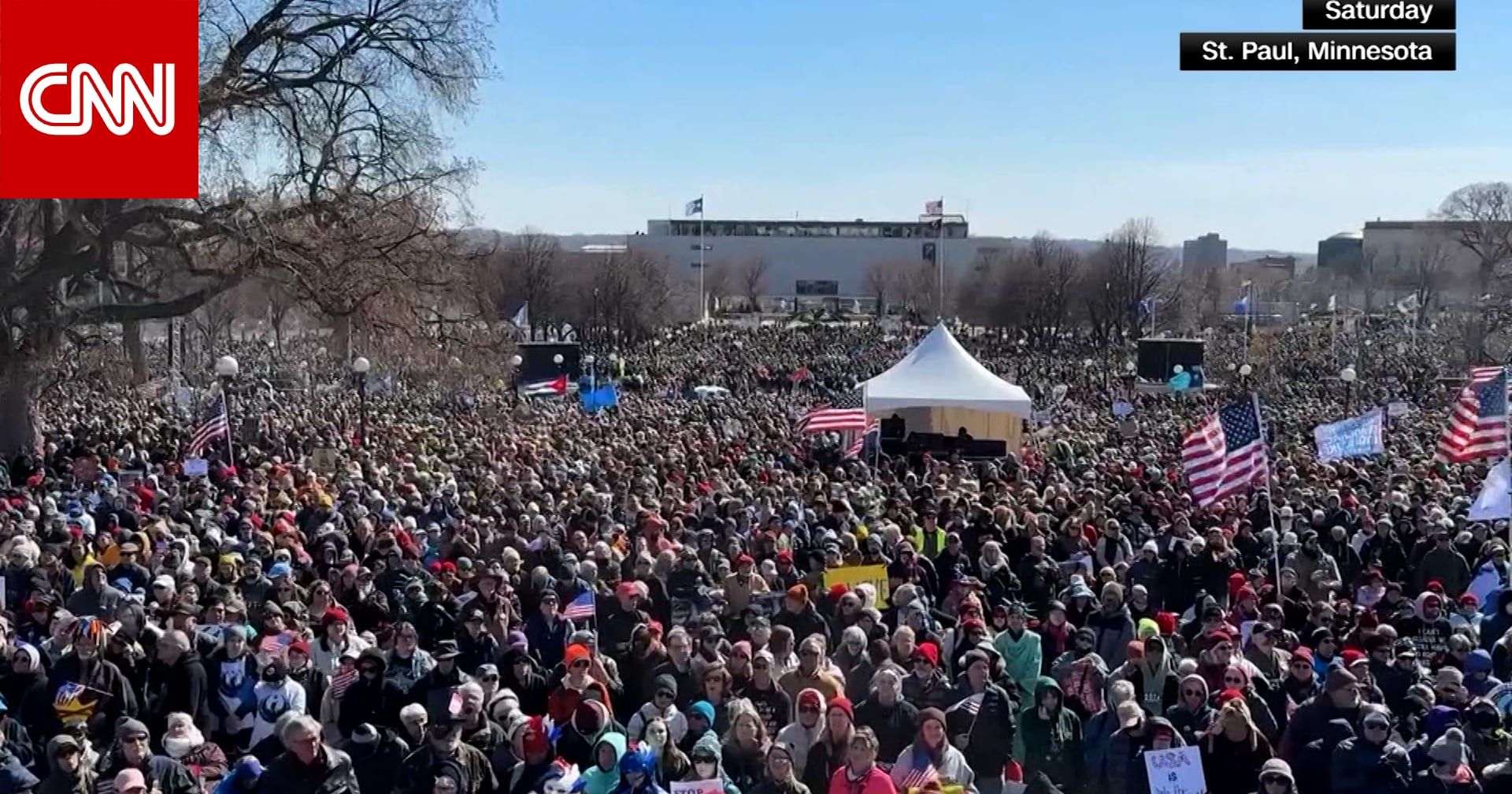 اخبارالعرب 24-كندا:الأحد 29 مارس 2026 08:01 صباحاً شارك آلاف الأشخاص في المظاهرة الرئيسية لحركة "لا ملوك" أمام مبنى الكابيتول بولاية مينيسوتا في سانت بول بعد ظهر اليوم.