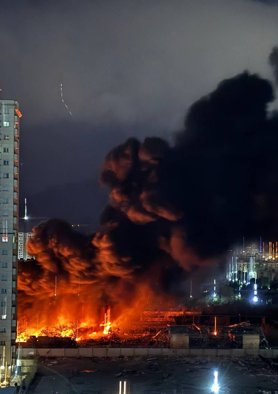 وقالت الخدمة إن الحادث يتعلق بحريق في خزان يحتوي على 3 آلاف متر مكعب من الوقود، وإن الطواقم تعمل على تفريغه وإخماده. وأظهرت صور تلفزيونية ولقطات لـ«وكالة الصحافة الفرنسية» أعمدة دخان كثيف فوق الموقع قبل أن يتراجع لاحقاً.