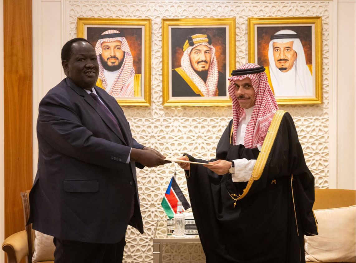تسلّم الرسالة الأمير فيصل بن فرحان، وزير الخارجية السعودي، خلال استقباله في مقر الوزارة بالرياض، المستشار الرئاسي للأمن القومي بجنوب السودان توت قلواك، ووزير الخارجية والتعاون الدولي مونداي سيمايا كومبا.