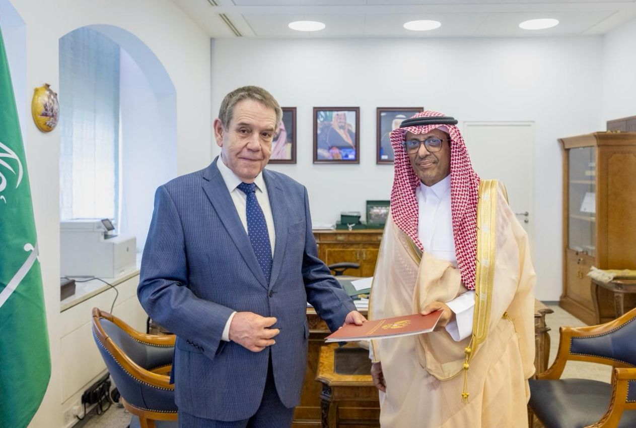 تسلم الرسالة وكيل الوزارة للشؤون الدولية المتعددة الدكتور عبد الرحمن الرسي، خلال استقباله في مقر الوزارة بالرياض، الخميس، سفير روسيا الاتحادية لدى السعودية سيرغي كوزلوف.