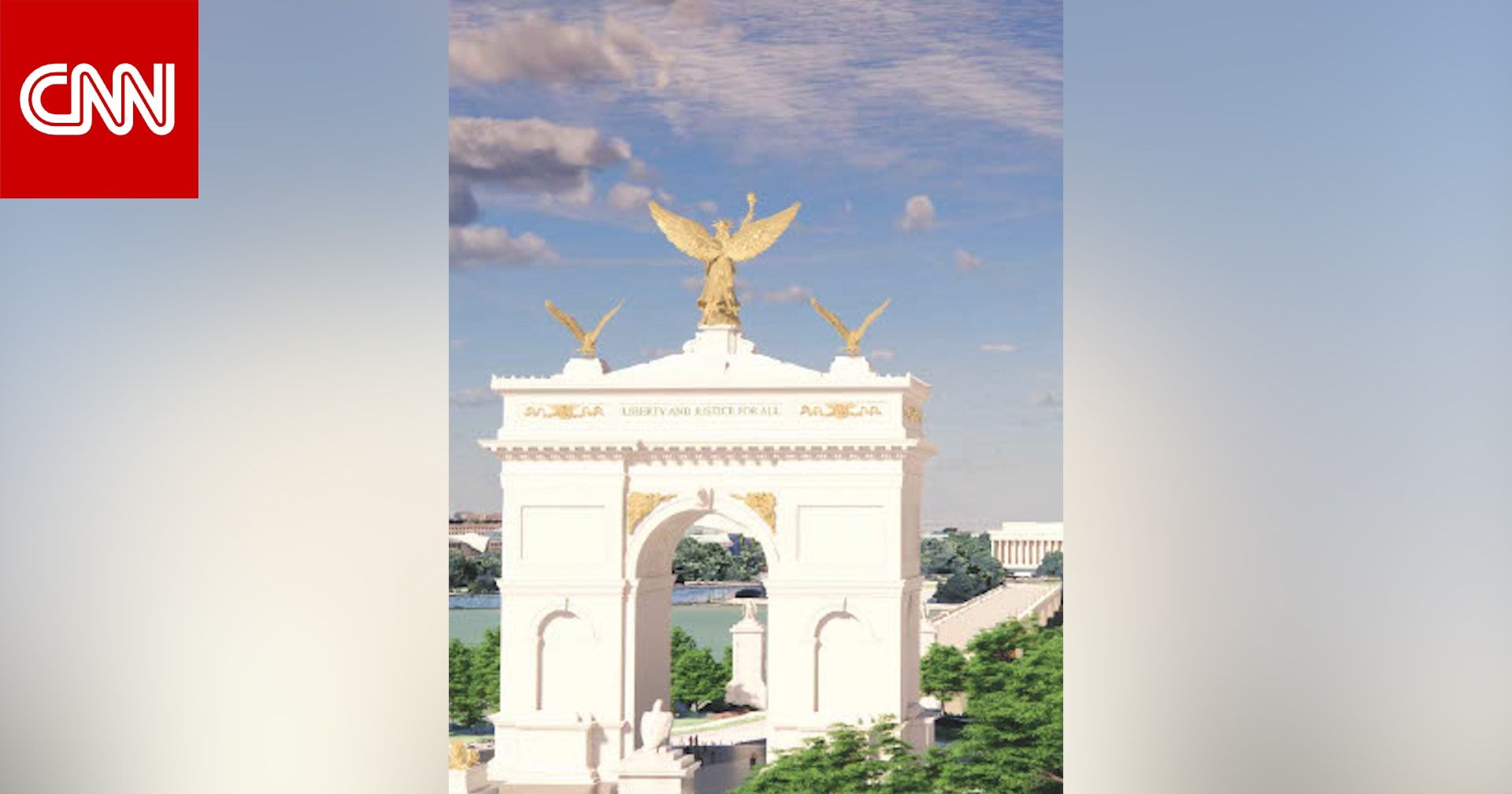 اخبارالعرب 24-كندا:السبت 11 أبريل 2026 07:01 صباحاً كشف البيت الأبيض عن تصاميم قوس "نصر" جديد يبلغ ارتفاعه 250 قدمًا في العاصمة، سيعلو الدوّار المروري بين مقبرة أرلينغتون الوطنية ونصب لنكولن التذكاري.