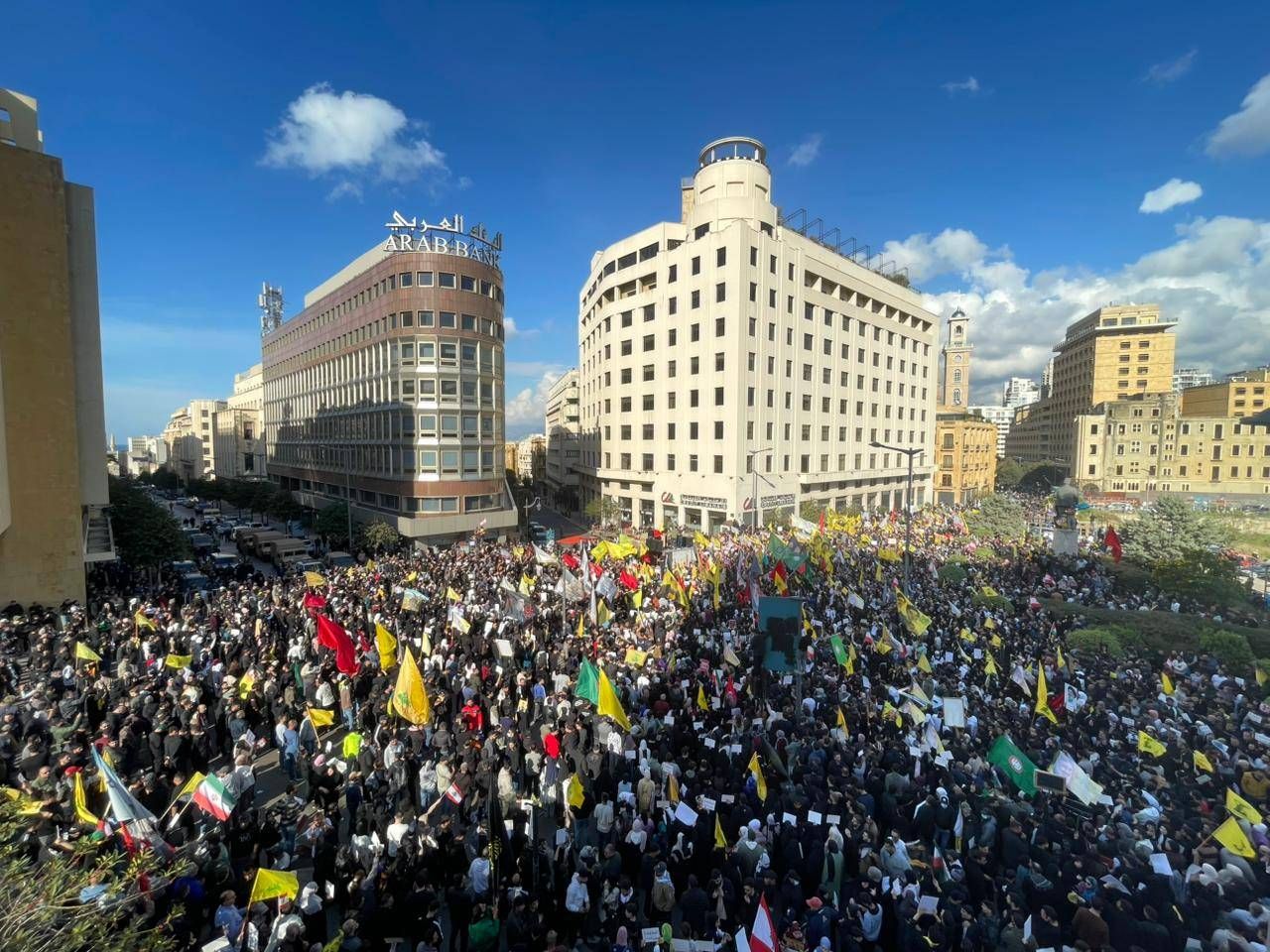 وشارك المئات من مناصري «حزب الله» وحركة «أمل» في تحركات ميدانية شهدتها ساحة رياض الصلح، وفي محيط السرايا الحكومية، احتجاجاً على قرار الحكومة بإطلاق مفاوضات مباشرة مع إسرائيل، وحصر السلاح في بيروت، وسط انتشار كثيف للجيش اللبناني والقوى الأمنية.