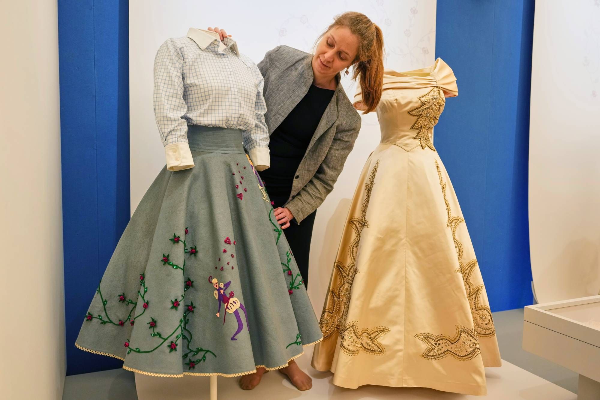 ورغم أن فساتين السهرة قد تكون أبرز ما يجذب الزوار، فإن المعرض يقدّم أيضاً مفاجآت، من بينها زيّ بسيط نسبياً يتكون من تنورة قصيرة مع أجنحة، بدا عليه بعض الاهتراء.