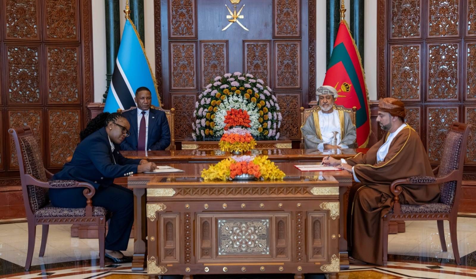 بينما، شهد السلطان هيثم بن طارق والرئيس البوتسواني دوما جيديون بوكو بقصر البركة العامر توقيع اتفاقيات تعاون بين البلدين، وذلك عقب جلسة مباحثات عُقدت برئاسة سلطان عمان ورئيس بوتسوانا، ناقشت أوجه التعاون بين البلدين في مختلف المجالات، بما يحقق المصالح المشتركة.