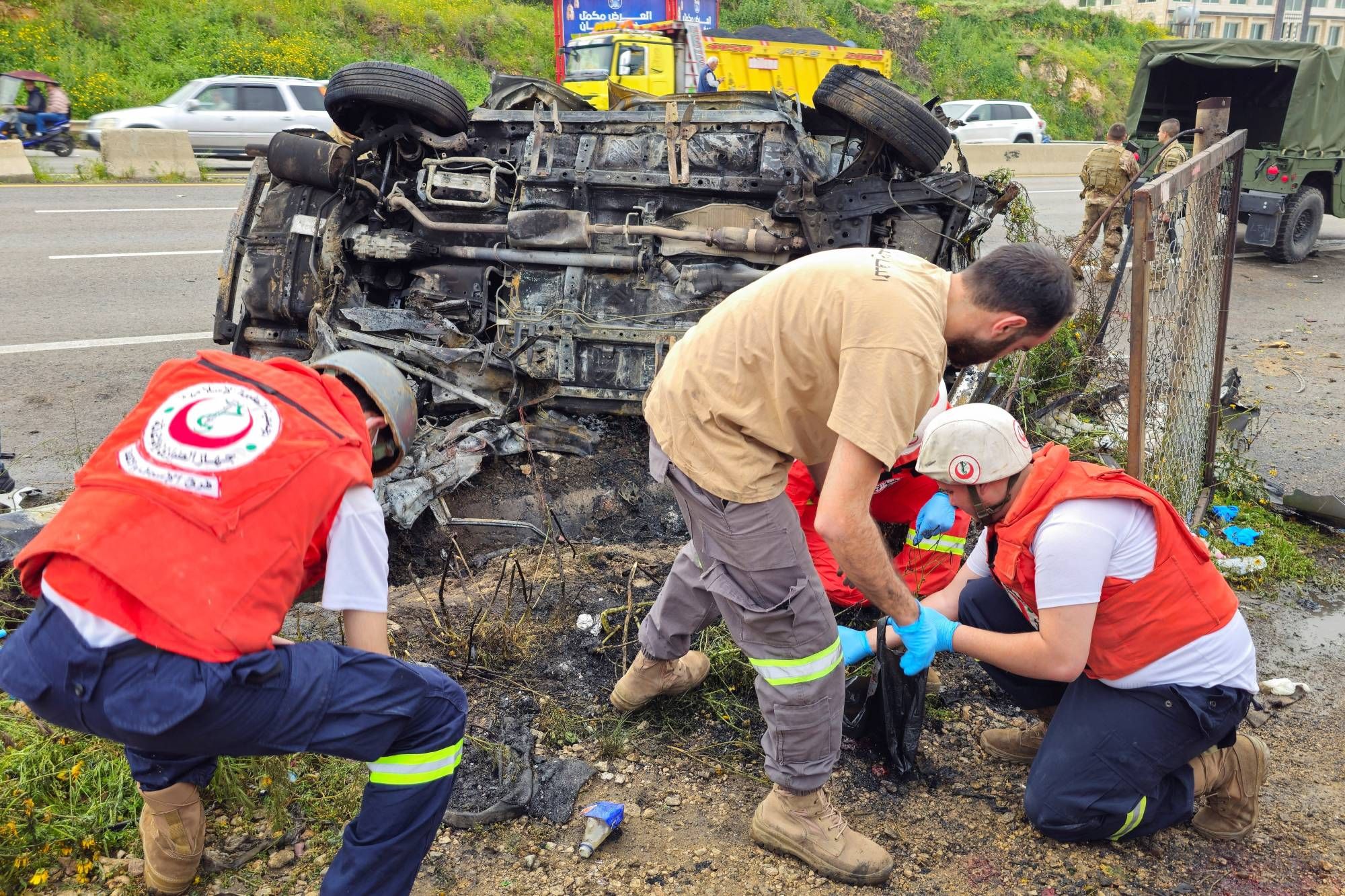 وشاهد مراسل «وكالة الصحافة الفرنسية» سيارة وقد احترقت بالكامل بعد استهدافها على المسلك الغربي لطريق أوتوستراد بيروت-صيدا في بلدة الجية، وكان مسعفون يجمعون أشلاء من الموقع، في حين عملت سيارات الإطفاء على إخماد النيران.