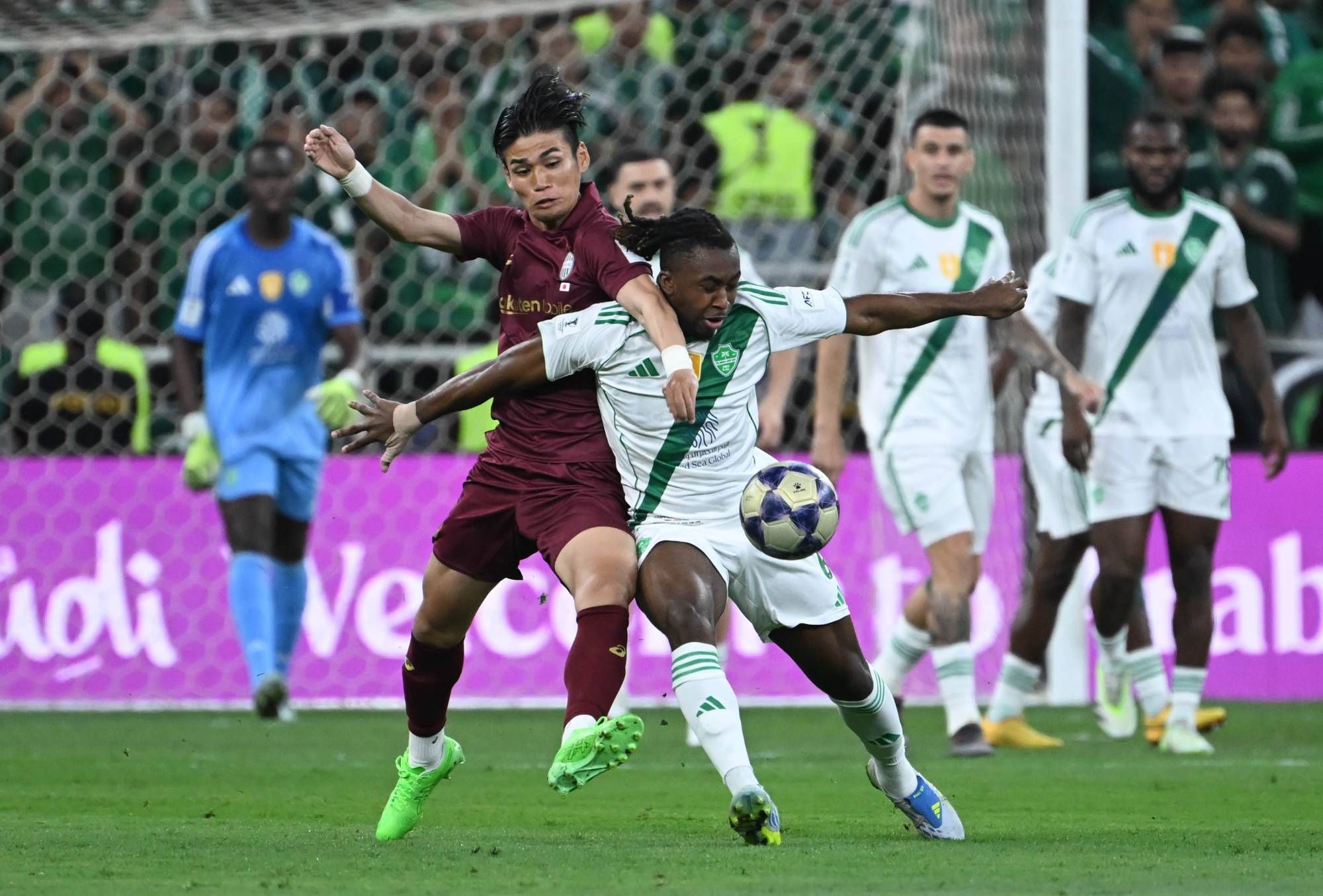 ومن هجمة منسقة، نجح فيسيل كوبي في التسجيل عندما وصلت الكرة إلى موتو بتمريرة رأسية من يويا أوساكو إثر ركلة حرة نفذها كاتسويا ناغاتو، فسددها داخل المرمى (31). ولاحت فرصة للأهلي لمعادلة النتيجة عندما تهيأت كرة أمام الفرنسي إنزو ميلو، لكنه سددها فوق العارضة (37)، ثم أضاع فيسيل كوبي فرصة محققة لتعزيز تقدمه بهدف ثانٍ عندما انفرد يويا أوساكا بالمرمى، لكنه لعب الكرة سهلة في أحضان الحارس السنغالي إدوار ميندي (43).