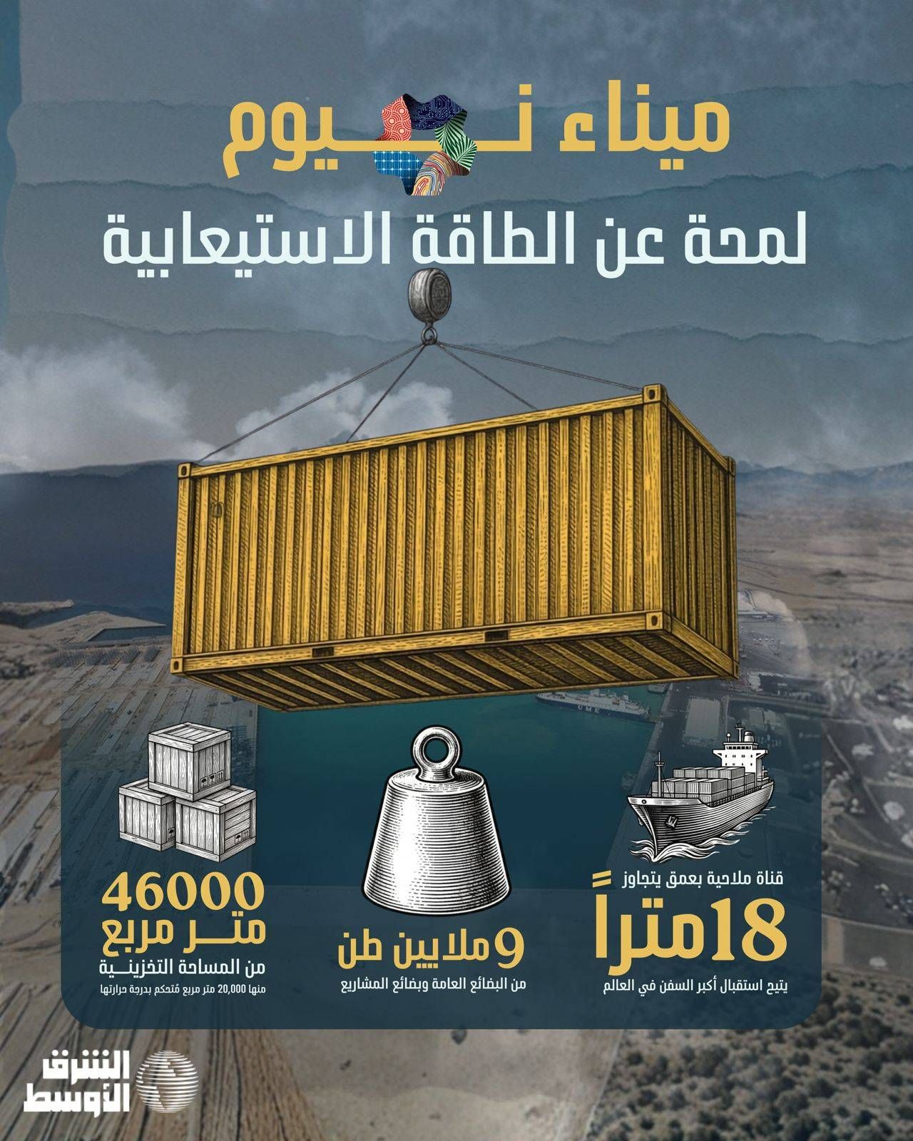 وفي تغريدة نشرها حساب «نيوم» قبل أيام، أكد أن الميناء يعمل بكامل طاقته كمركز استراتيجي على البحر الأحمر لإدارة مختلف أنواع البضائع بكفاءة عالية، مشيراً إلى أنه مدعوم ببنية تحتية متقدمة ومعايير تشغيلية عالية، ويربط حركة التجارة من أميركا الشمالية والجنوبية وأوروبا ومصر إلى المنطقة وصولاً إلى أسواق الخليج والعراق.