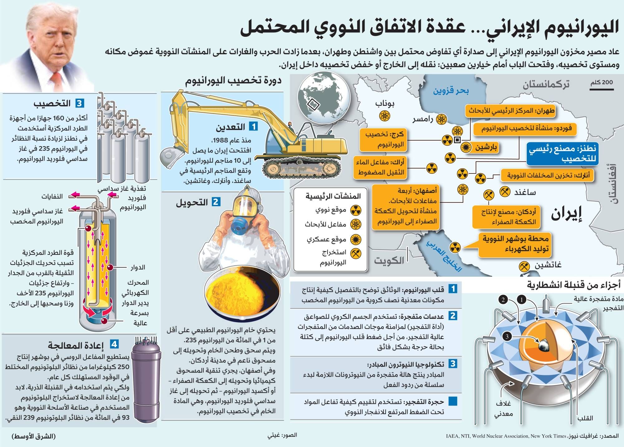 اخبار العرب -كندا 24: السبت 25 أبريل 2026 07:27 مساءً 11 طناً من اليورانيوم تعقّد اتفاق ترمب مع إيران