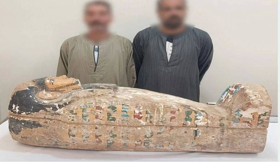 وفى بيان سابق لوزارة الداخلية، في إطار جهود مكافحة جرائم حيازة القطع الأثرية والاتجار بها، أكدت معلومات وتحريات قطاعي (السياحة والآثار – الأمن العام) بالتنسيق مع مديرية أمن سوهاج قيام (شخصين «لأحدهما معلومات جنائية» - مقيمين بسوهاج) بحيازة قطع أثرية بقصد الاتجار، وعقب تقنين الإجراءات تم استهدافهما وضبطهما بنطاق محافظة سوهاج، وضُبط بحوزتهما (تابوت أثري كامل «مكون من جزأين»)، وبمواجهتهما اعترفا بأن التابوت المضبوط نتاج أعمال الحفر والتنقيب عن الآثار بإحدى المناطق الجبلية بدائرة مركز شرطة أخميم، وحيازتهما له بقصد الاتجار فيه، وبعرض التابوت على الجهات المعنية تبيَّن أنه أثري ويعود للعصر الروماني المتأخر.