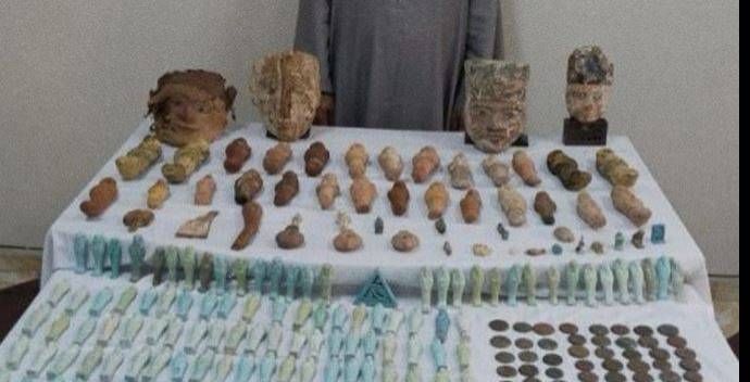 وكانت وزارة الداخلية المصرية أعلنت في أوائل أبريل الحالي عن القبض على شخص مقيم في دائرة مركز شرطة ديرمواس بالمنيا، بتهمة حيازة قطع أثرية بقصد الاتجار متخذاً من مسكنه مسرحاً لمزاولة نشاطه الإجرامي.