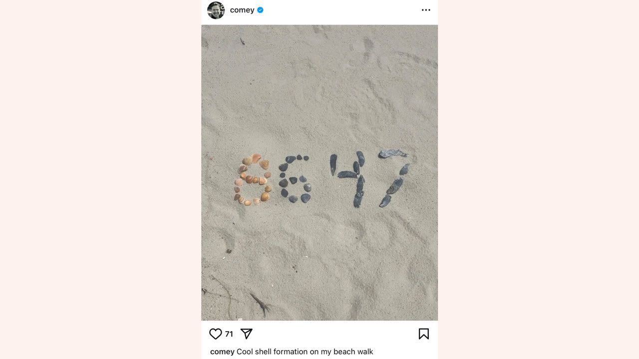 وتتمحور لائحة الاتهام الصادرة، الثلاثاء، حول صورة نشرها كومي على وسائل التواصل الاجتماعي في مايو الماضي، تُظهر أصدافًا على شاطئ البحر تُشكّل الرقمين "86" و"47". وكتب في التعليق: "تشكيلة أصداف رائعة خلال نزهتي على الشاطئ".