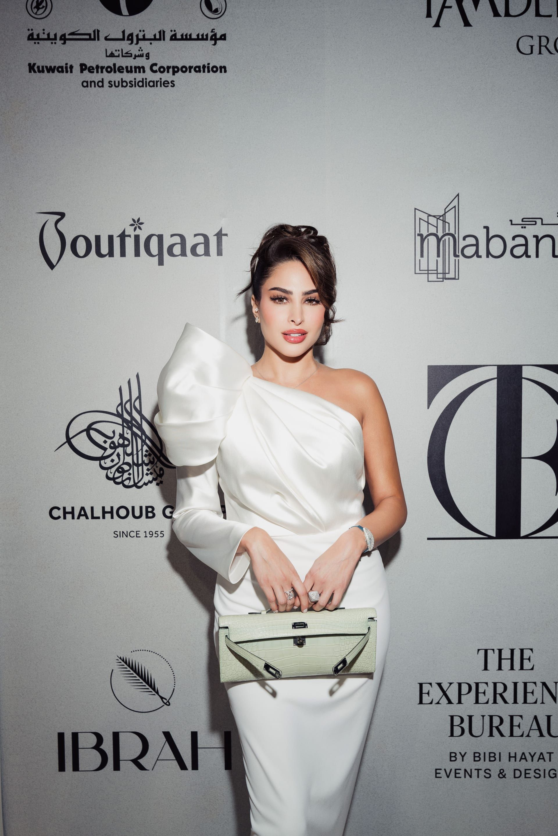 أما شقيقتها مدونة الموضة ديما الشيخلي فقد اختارت جامبسوت أسود من المصمم اللبناني إيلي صعب، حيث تألّف الجزء العلوي من كورسيه مطرّز بالخرز الأسود اللامع، مع سروال واسع الأرجل، ونسقته مع حقيبة كلاتش جلدية سوداء وحذاء صندل مفتوح من العلامة التجارية الفرنسية -التونسية "ميزون آلايا".