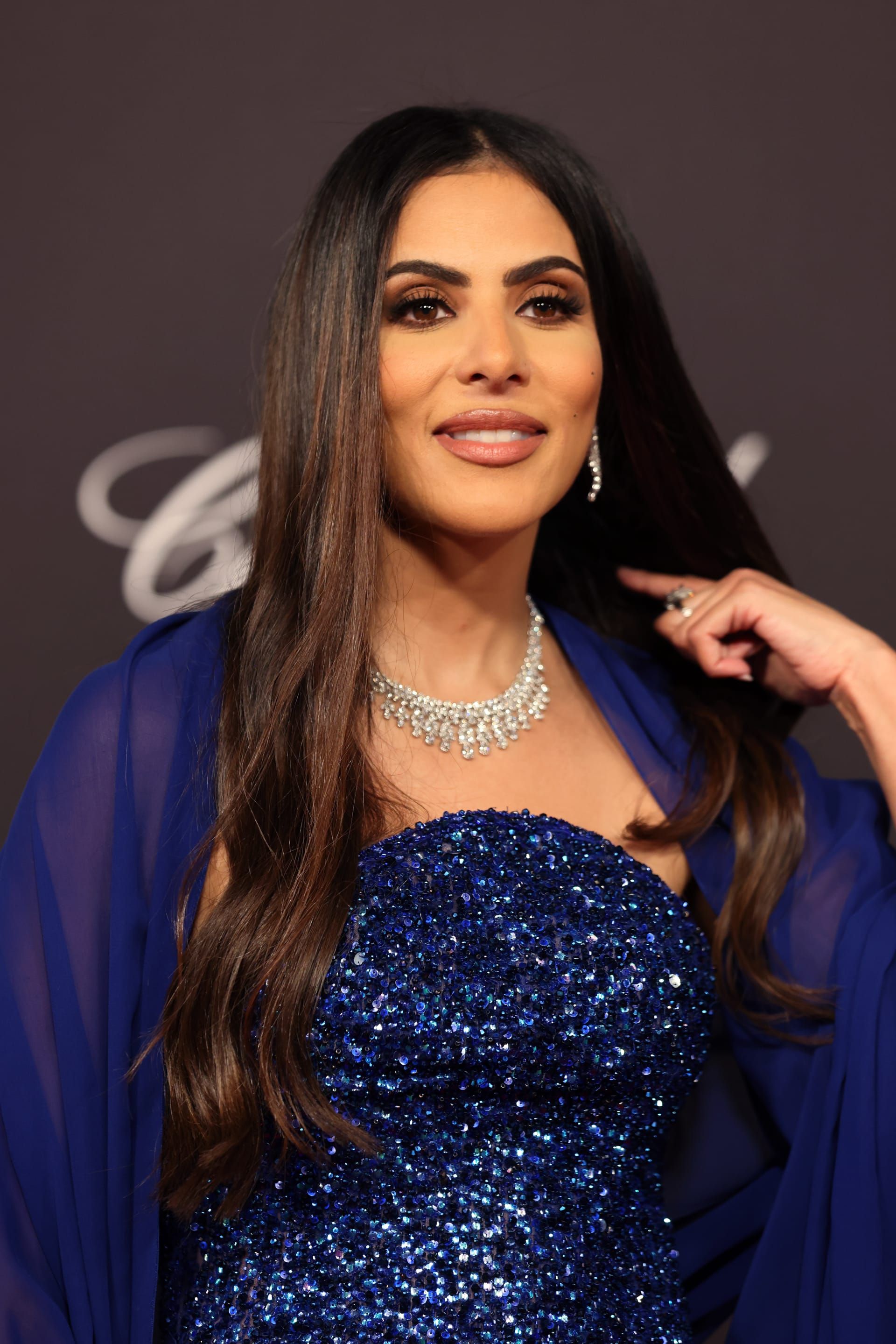 أما مؤثّرة الموضة ندى باعشن فاختارت الأزرق الملكي من المصمم اللبناني جورج حبيقة، وتميّز فستانها بقصّة الأكتاف العارية ومشلح الموسلين الخلفي.