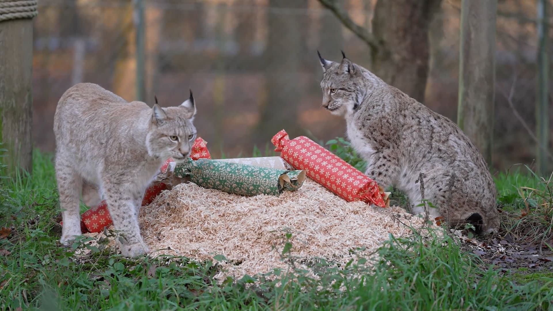 شاهد.. صغار الفيلة والوشق تستمتع بهدايا عيد الميلاد في حديقة حيوانات بإنجلترا