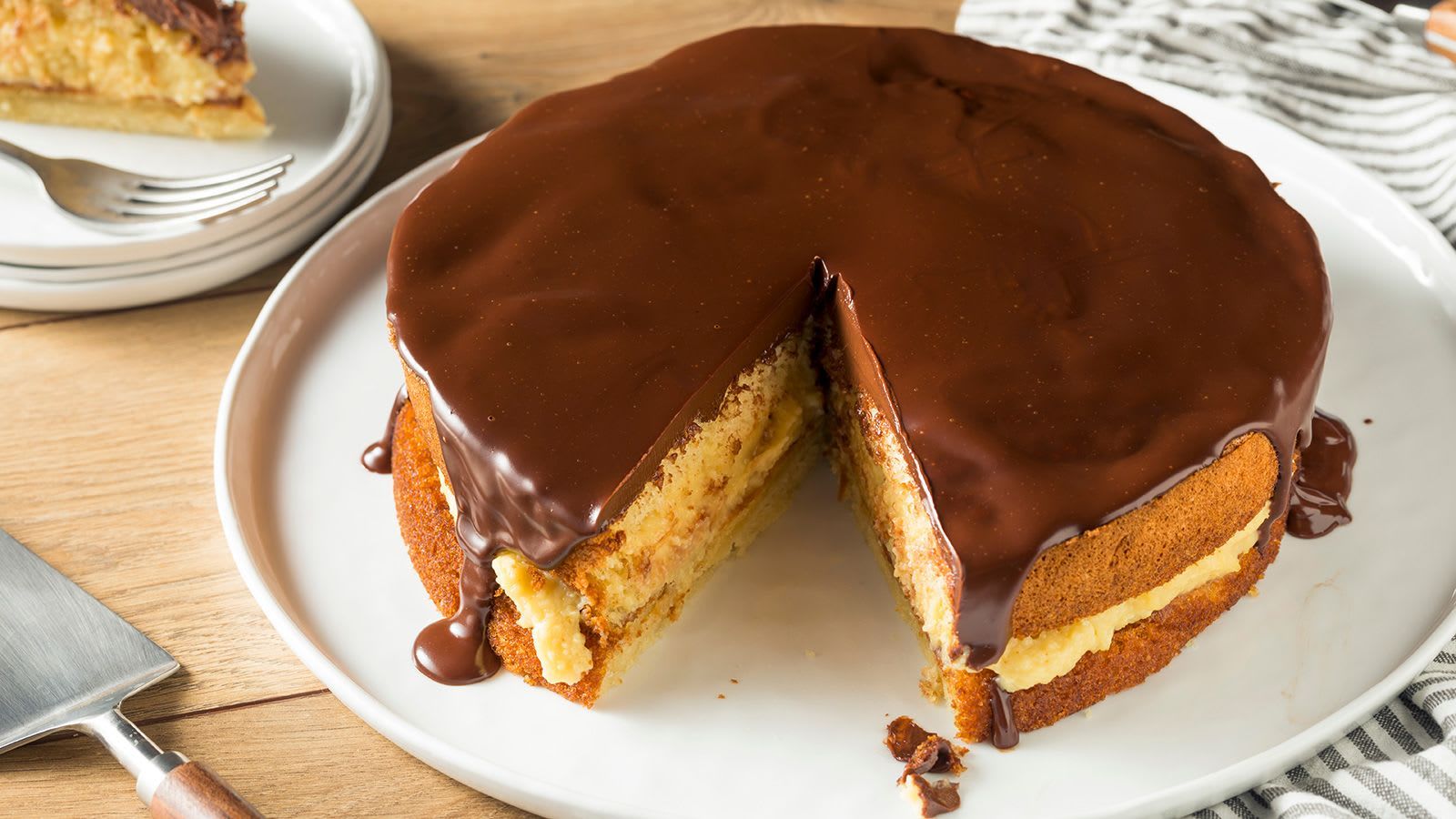 "فطيرة ترتدي زي كعكة" هكذا وصفت مجلة Yankee فطيرة بوسطن بالكريمة، التي تتكوّن من كريمة باتيسيير حلوة محشوة بين طبقتين دائريتين من كعك ذهبي اللون، وتُغطّى بطبقة ناعمة من صلصة الشوكولاتة.