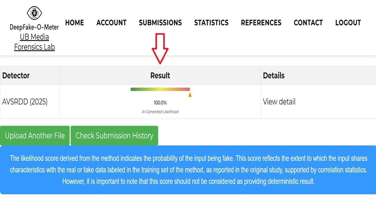 وبيّنت نتائج أداة Deep-Fake-O-Meter، التابعة لجامعة بافالو الأمريكية، أن الفيديو زائف بنسبة 100%.