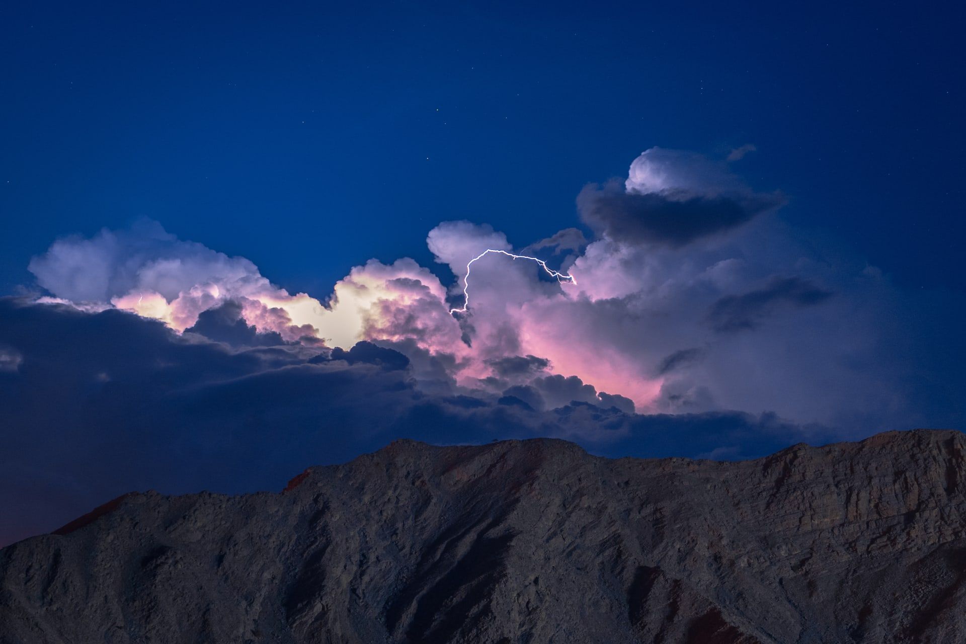 ولفت المُصور العُماني إلى أنه قام برصد هذه الظاهرة في شرق محافظة مُسندم وتحديدًا فوق بحر عُمان، حيث كانت الخلايا الرعدية تتشكل وتمتد إلى ارتفاعات عالية تسهّل توثيق ظواهر مثل البرق الهارب.