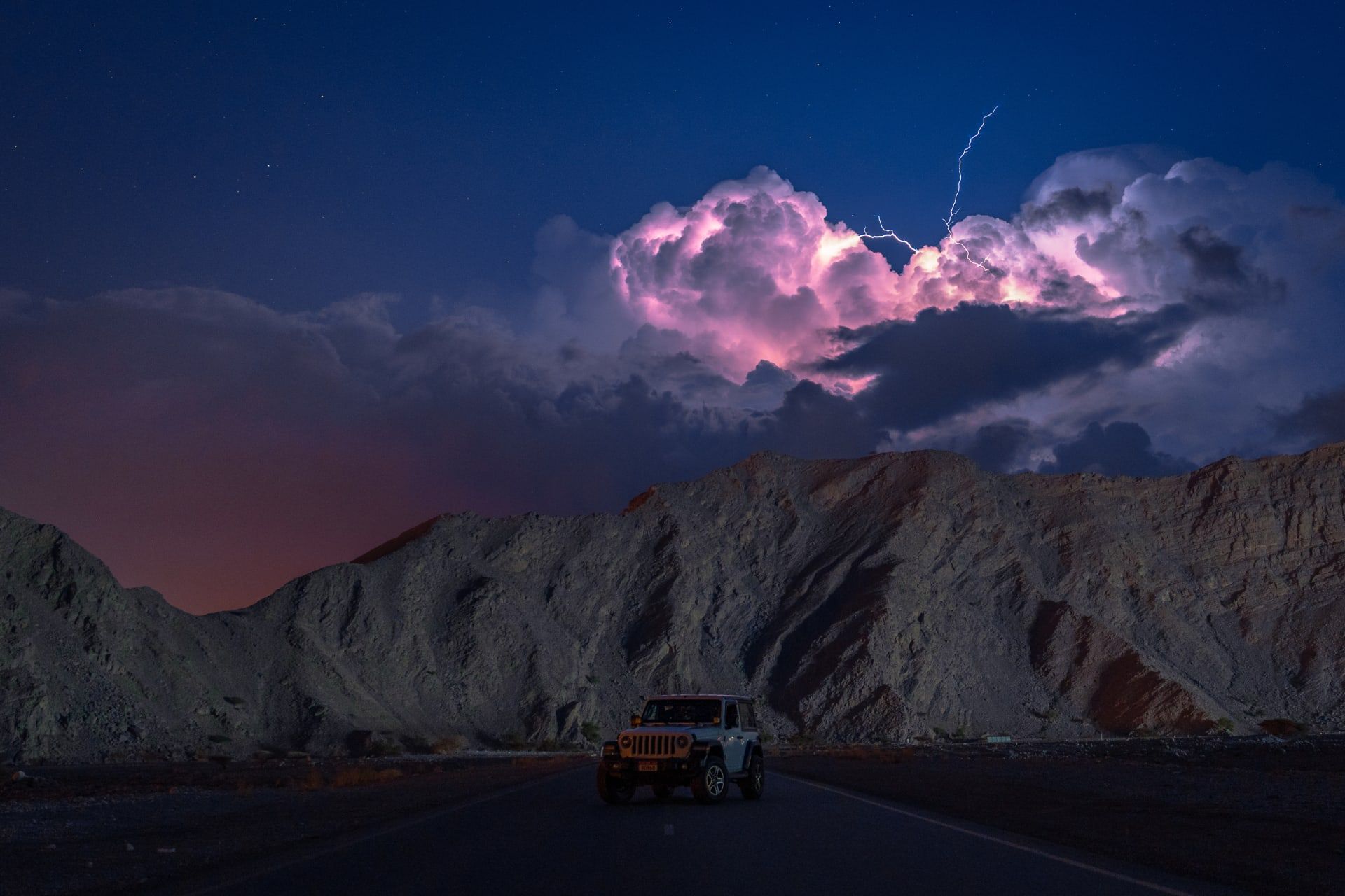وصف المصور العُماني مشهد تشكّل البرق الهارب في سماء مُسندم بأنه "لحظة نادرة تمزج بين رهبة الطبيعة وجمالها الخفي؛ إذ يرتفع البرق من قلب السحب الرعدية نحو السماء العليا في خطوط ضوئية حادة، فيما تقف الجبال الشاهقة في الخلفية ككتل صامتة تضيف إلى المشهد عمقًا وهيبة استثنائية".