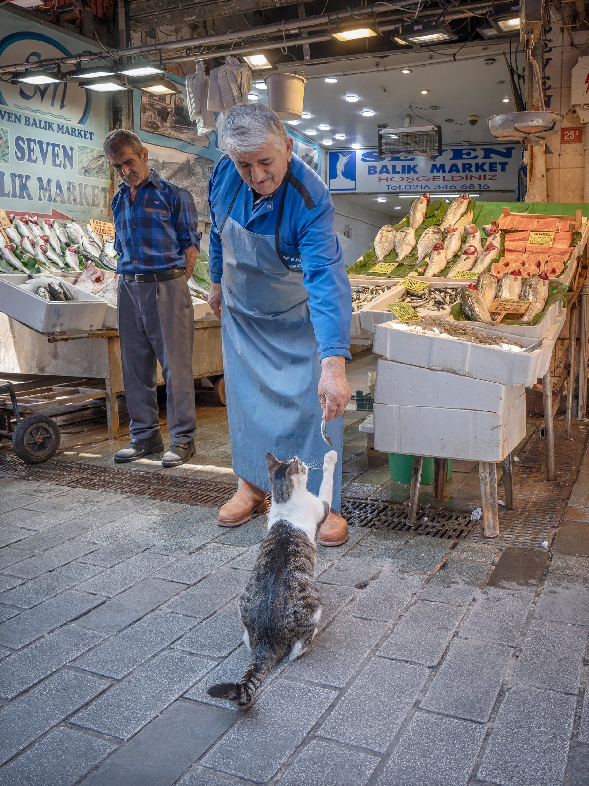 جعلت القطط لنفسها مكانة في قلوب الأشخاص أيضًا، إذ ليس من الغريب أن تراها مسترخيةً تمامًا فوق كومة من البضائع داخل متجر، أو تستمتع بقطعة من السمك أو حتّى الشاورما من البائعين.