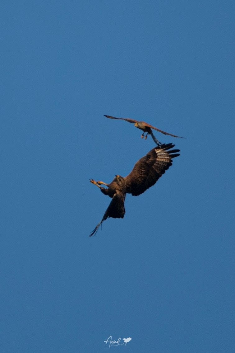 وأوضح مصور الحياة الفطرية: "غالبًا ما تنشب الصراعات بدافع حماية المجال الجوي أو التنافس على موقع أو طعام.. وهذه التصرفات شائعة بين الطيور الجارحة، لكنّها صعبة الرصد والتوثيق".