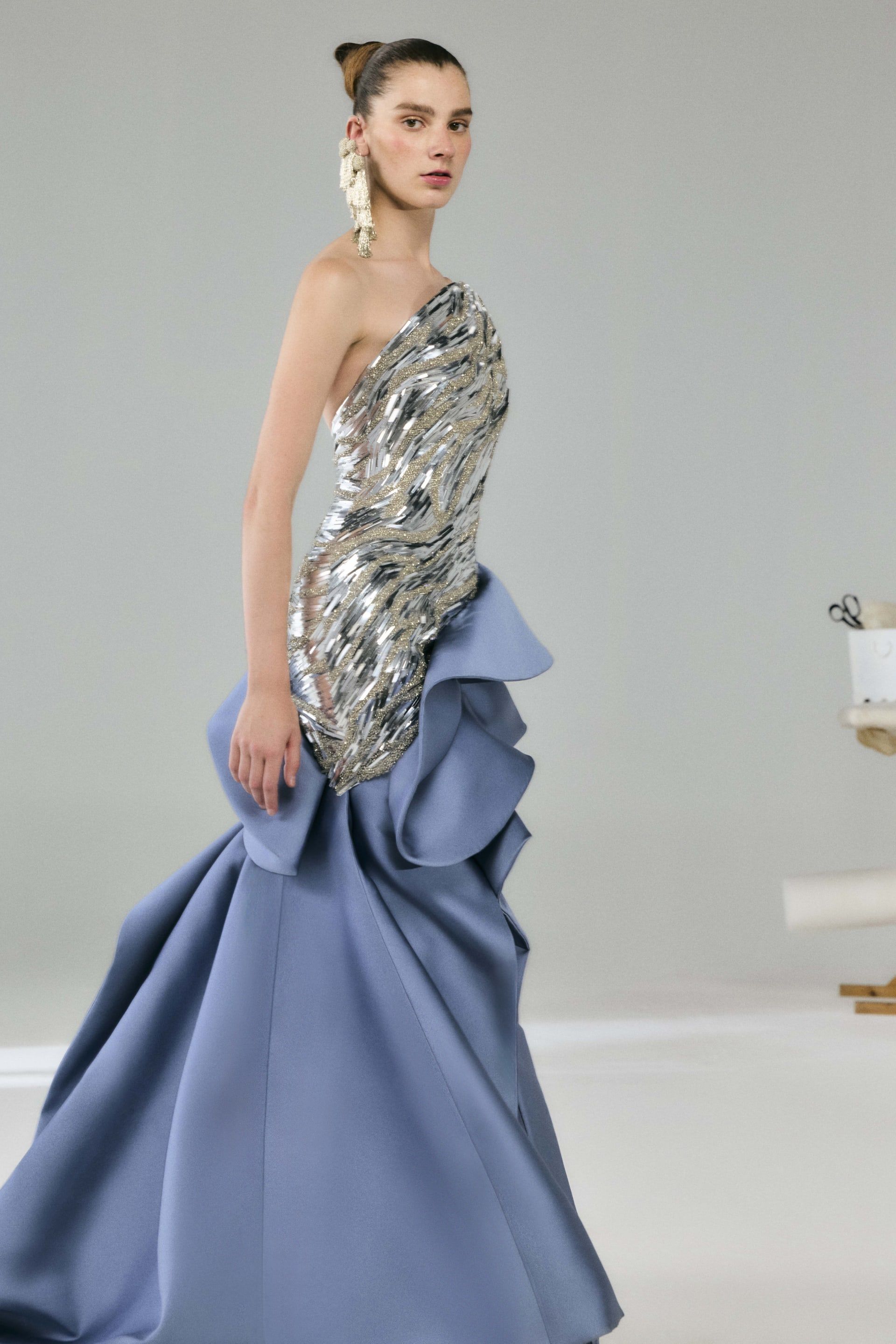 مصمما الأزياء جورج قزّي وأسعد أسطا: نبدأ دائمًا بالقصة. كل شيء آخر يتبعها. تحدد القصة المزاج، والإيقاع، والمشاعر، ومن ثم ينسجم اللون، والقماش، والشكل مع السرد. بدون الحكاية، تصبح المجموعة مجرد سلسلة من الفساتين. نحن نحب الفصول أكثر من القطع الفردية.