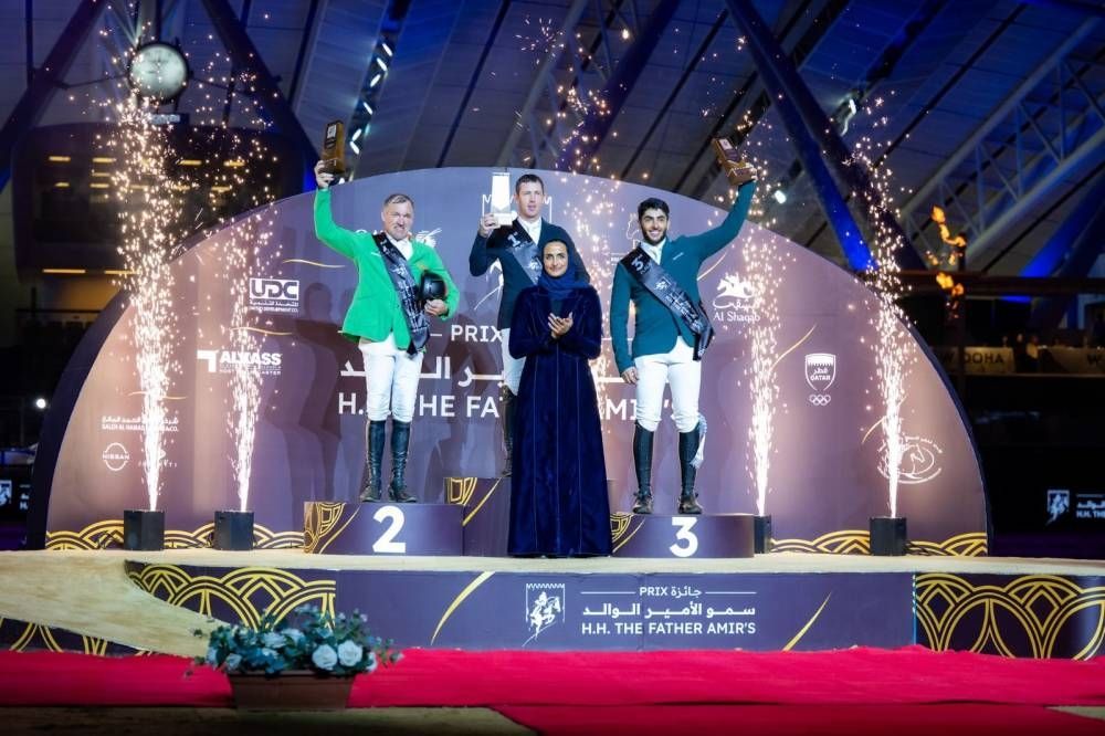 السبت 24 يناير 2026 05:28 مساءً توجت سعادة الشيخة هند بنت حمد آل ثاني، نائب رئيس مجلس إدارة مؤسسة قطر للتربية والعلوم وتنمية المجتمع، الفائزين بالمراكز الثلاثة الأولى في الجائزة الكبرى للخمس نجوم لثالث جولات جائزة سمو الأمير الوالد التي اختتمت منافساتها أمس في ميدان لونجين بالشقب.