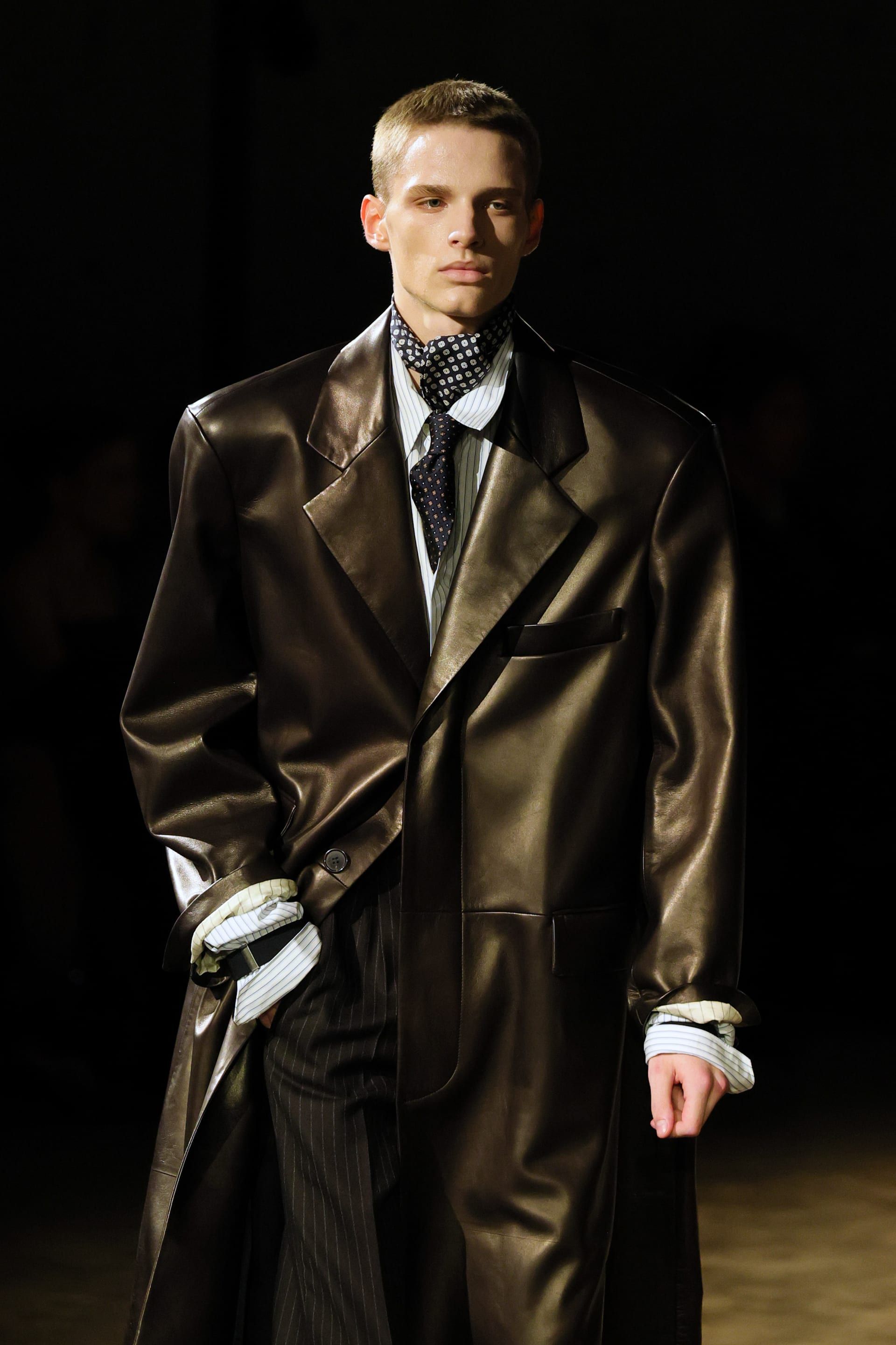 وقد تميزت مجموعة "سان لوران" للأزياء الرجالية لخريف/شتاء 2026–2027 بالخياطة الدقيقة، والقصات المستقيمة، مع حضور واضح للبدلات الرسمية، والسترات ذات الأكتاف المحددة، والسراويل الضيقة، والأحذية العالية. وسيطرت لوحة لونية داكنة على المجموعة، إلى جانب استخدام خامات فاخرة وتفاصيل مدروسة.