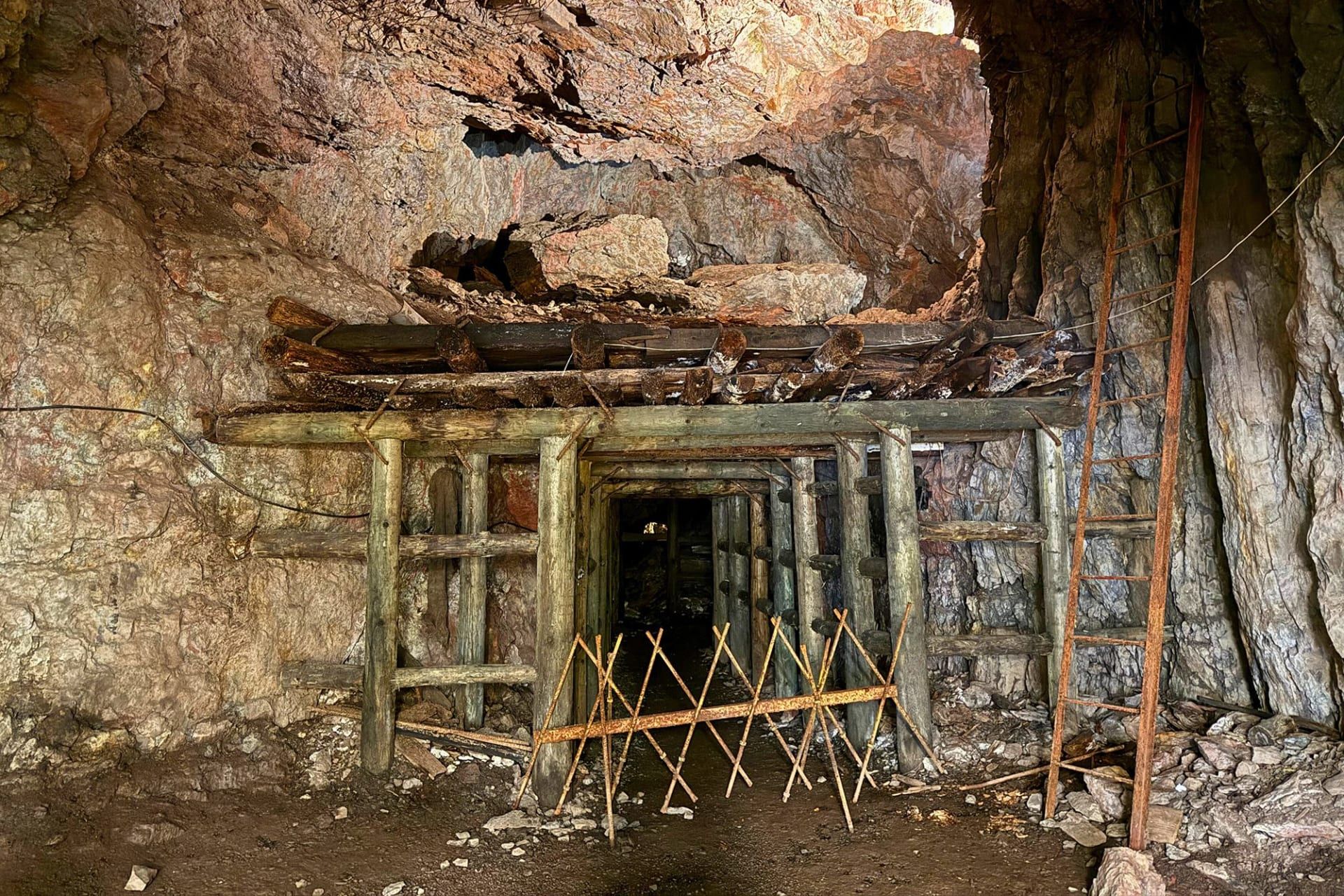 وفي أحد الأنفاق، يمكن رؤية بقايا سكة حديد ضيقة كانت تُستخدم أثناء الحفر.
